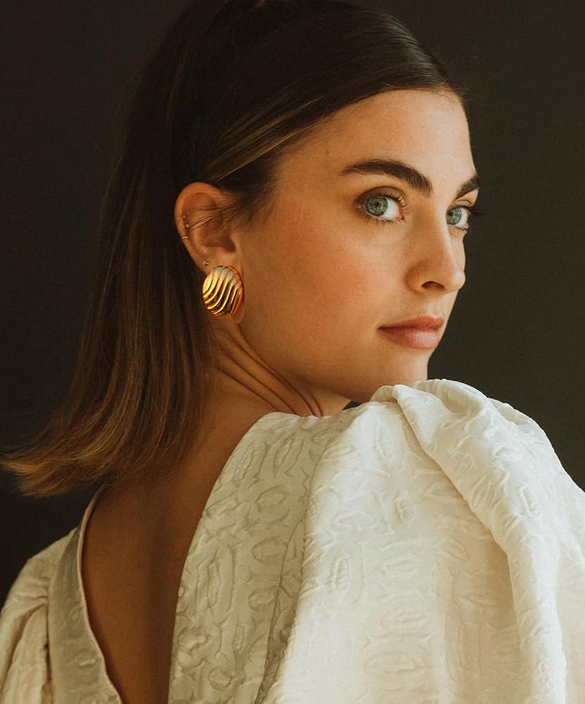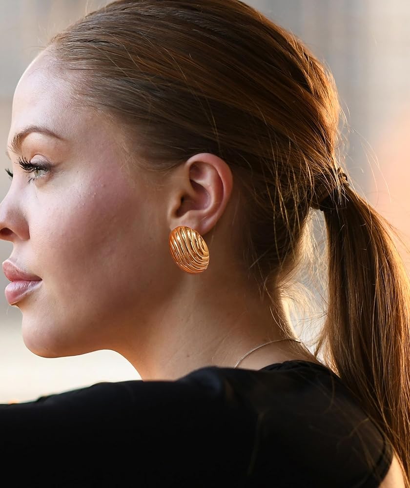 【ملحق مثالي】: هذه الأقراط الذهبية المكتنزة تتناسب بشكل مثالي مع أي مظهر تقريبًا - من يوم العمل إلى الخروج ليلاً. سواء كنت ترتدي الجينز والتيشيرت أو ترتدي فستان الحفلات، فإن هذه الأقراط ستضفي على جميع ملابسك لمسة من الأناقة.