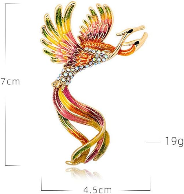 Colorful Phoenix Brooch Double-Headed Gradient Phoenix Bird Brooch Chinese Style Vintage Enamel Brooch Crystal Enamel Peacock Corsage Chinese Style Jewelry Women Ladies Clothing Accessories Gift,