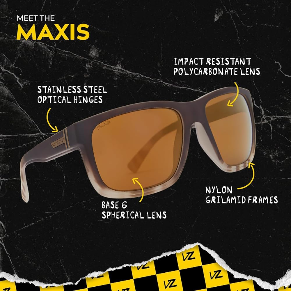 فونزدبر نظارات شمسية مستقطبة للرجال والنساء من ماكسيس، بتصميم ليوبارد شارك ساتان مع عدسات مستقطبة من الكروم الذهبي والبولي كربونات مقاومة للصدمات مع حماية من الاشعة فوق البنفسجية وهيف، 61 ملم، جلد
