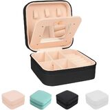 صندوق مجوهرات صغير، منظم صندوق مجوهرات صغير للسفر، حقيبة مجوهرات للسفر، حقيبة تخزين لعرض منظم السفر مع مرآة للخواتم والأقراط والقلائد والأساور والمجوهرات