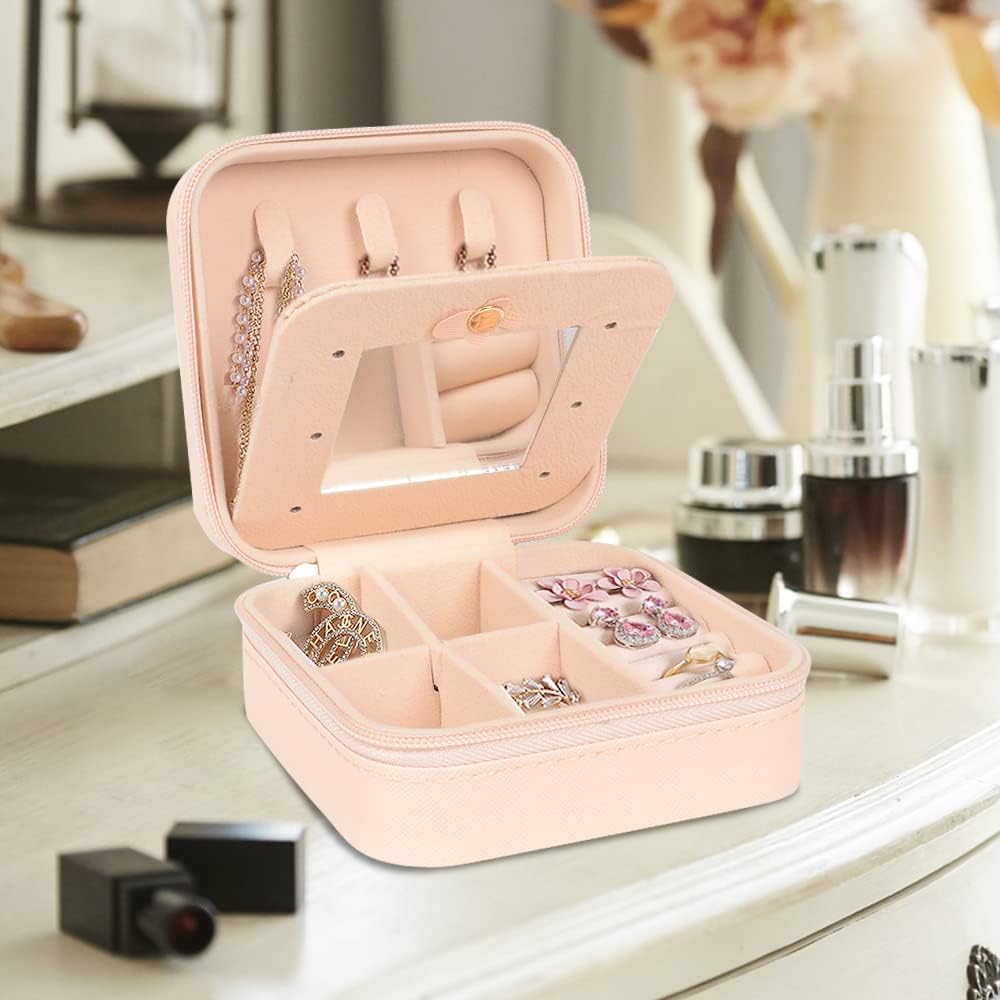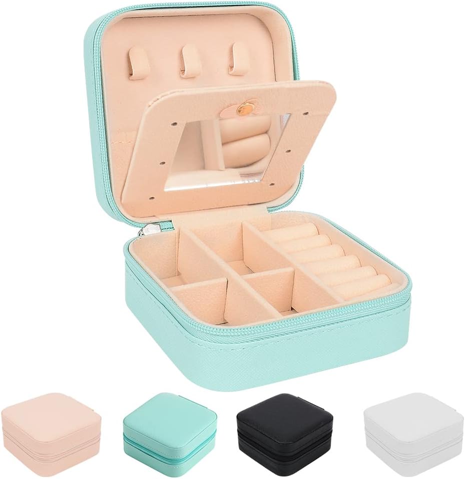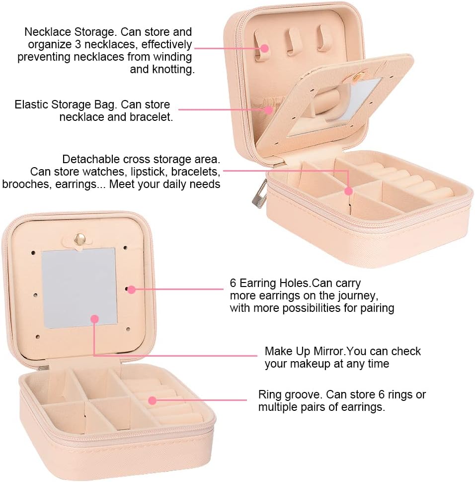 • Multifunctional: With slots, hooks, compartments and shirred catch pocket to accommodate different sized jewelry, you can store your necklaces, earrings, bracelets and other jewelry at the same time without taking up too much space. Two removable dividers to meet different needs. Mini jewelry box lid and base are solid, well-constructed and sturdy, Keep all your beloved jewelry well organized.