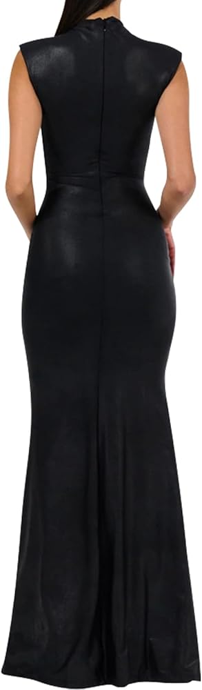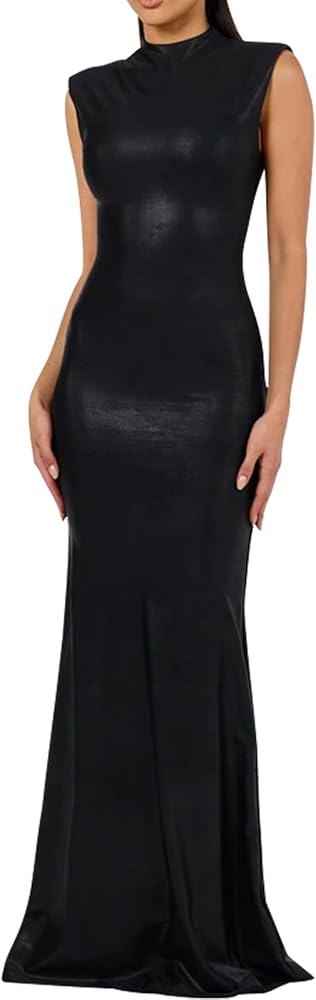 【فستان طويل من الجلد للنساء المميزات】: فستان طويل برقبة على شكل قارب، فساتين طويلة بودي كون، فستان طويل بدون أكمام، فستان طويل ضيق، لون ثابت، طول الأرض، فستان رسمي أنيق. فساتين مثيرة فائقة التمدد للسيدات سهلة التكيف مع أي شكل
