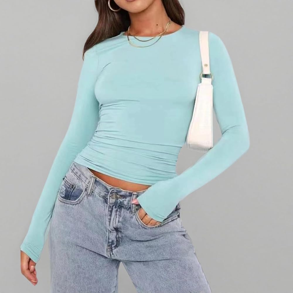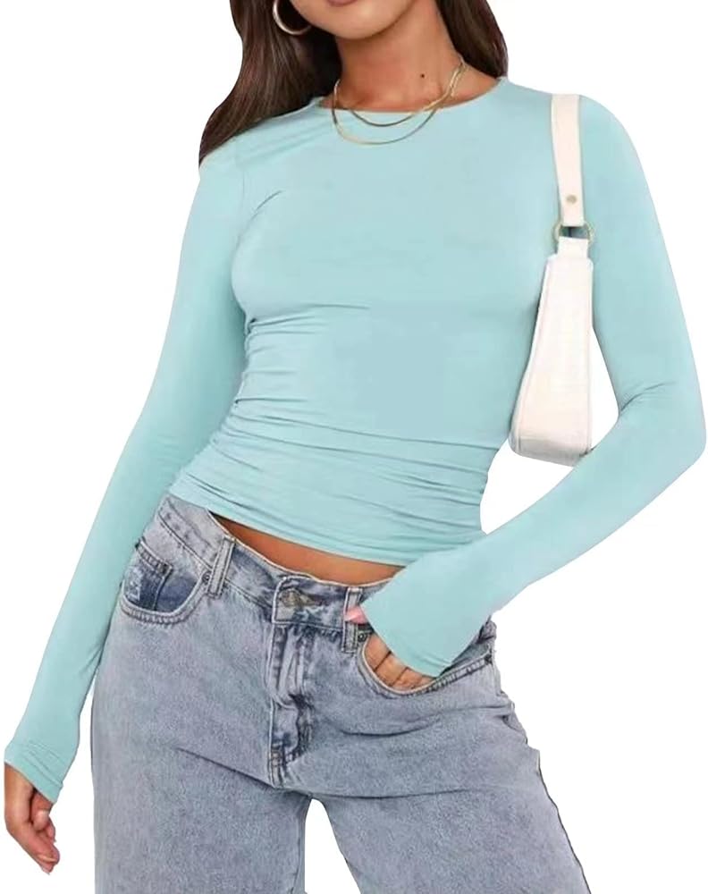 خامة ناعمة: قمصان نسائية ضيقة طويلة الأكمام مصنوعة من نسيج بوليستر عالي الجودة. ناعم ومرن، وخفيف الوزن ومريح في الارتداء.