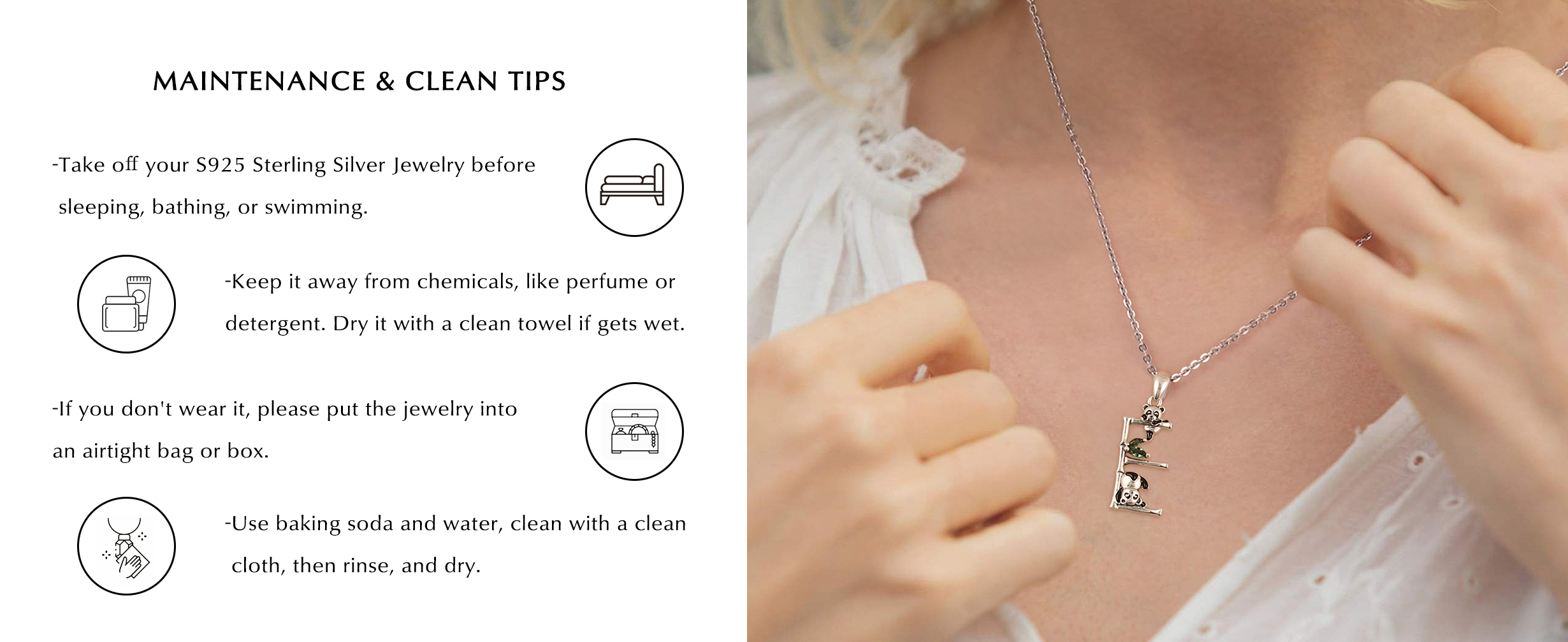 • التعبئة: تأتي قلادات الباندا الأولية المصنوعة من الفضة الإسترلينية عيار 925 في صندوق هدايا مجاني جميل يتضمن قطعة قماش للتنظيف، مما يجعلها سهلة الارتداء بمفردها أو تقديمها كهدية.