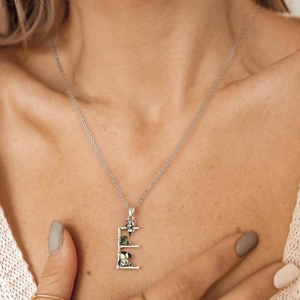 الباندا قلادة 925 الفضة الاسترليني قلادة الباندا الأولي للنساء L الأولي O الأولي E الأولي رسالة قلادة قلادة هدايا مجوهرات للفتيات الأصدقاء