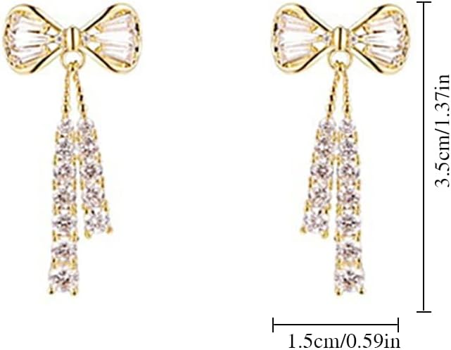Vcagirest Bow Zircon Crystal Earrings Rhinestone Bow Earrings Crystal Statement Dangle Earrings Dainty Tassel Earrings for Girls, Zinc, No Gemstone