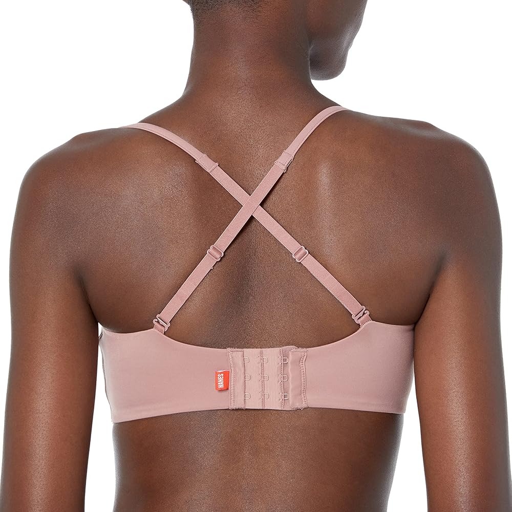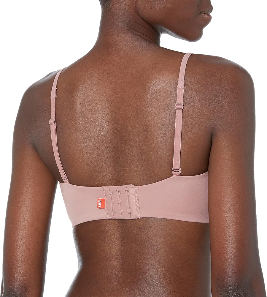 Hanes Bandeau Contour is made from recycled microfiber. Fixed foam cups inside the lining help create a create modern look. Adjustable straps, hook & eye back closure, and CFF sizing provide a custom fit.
