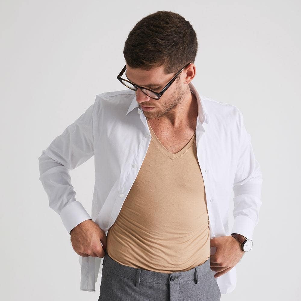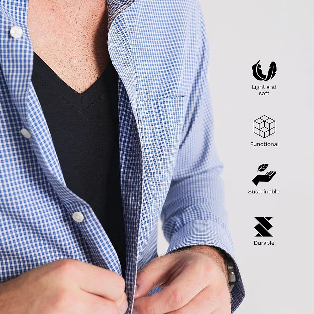 【ثقة خالية من حلقات العرق】يعد القميص الداخلي الواقي الخاص بنا مثاليًا لأولئك الذين يعانون من التعرق الخفيف ولكنهم يرغبون في تجنب حلقات العرق في قمصانهم. يمتص نسيجه التكنولوجي عالي التهوية العرق أكثر بمرتين من التي شيرت القطني، مما يضمن لك البقاء جافًا وواثقًا طوال اليوم.