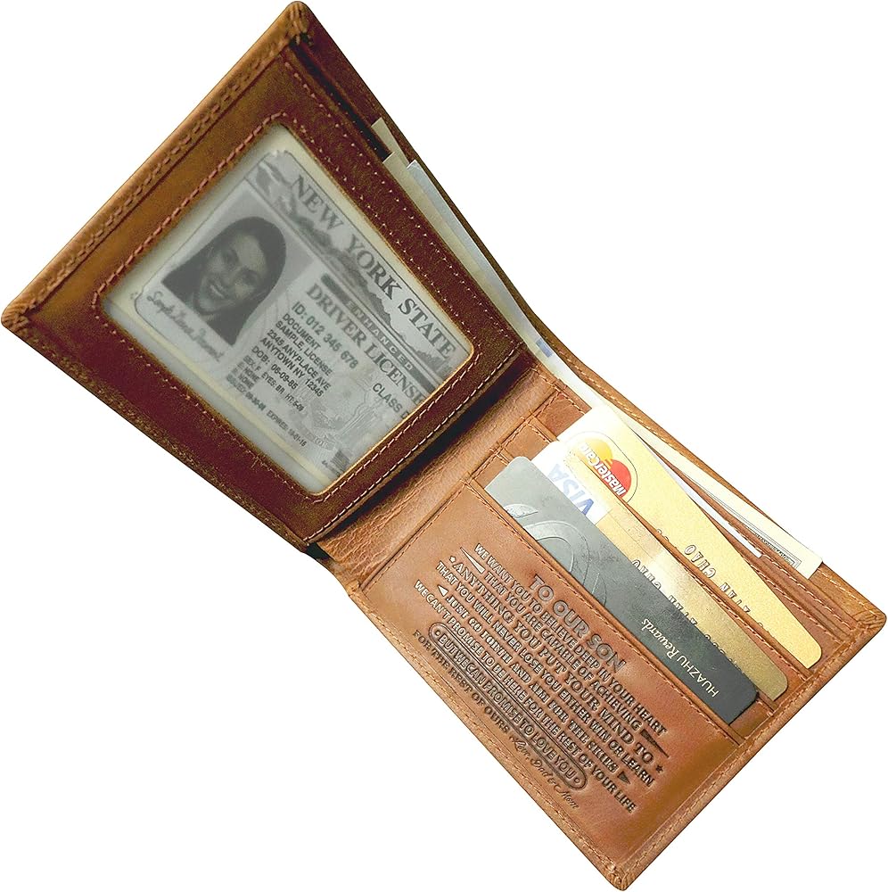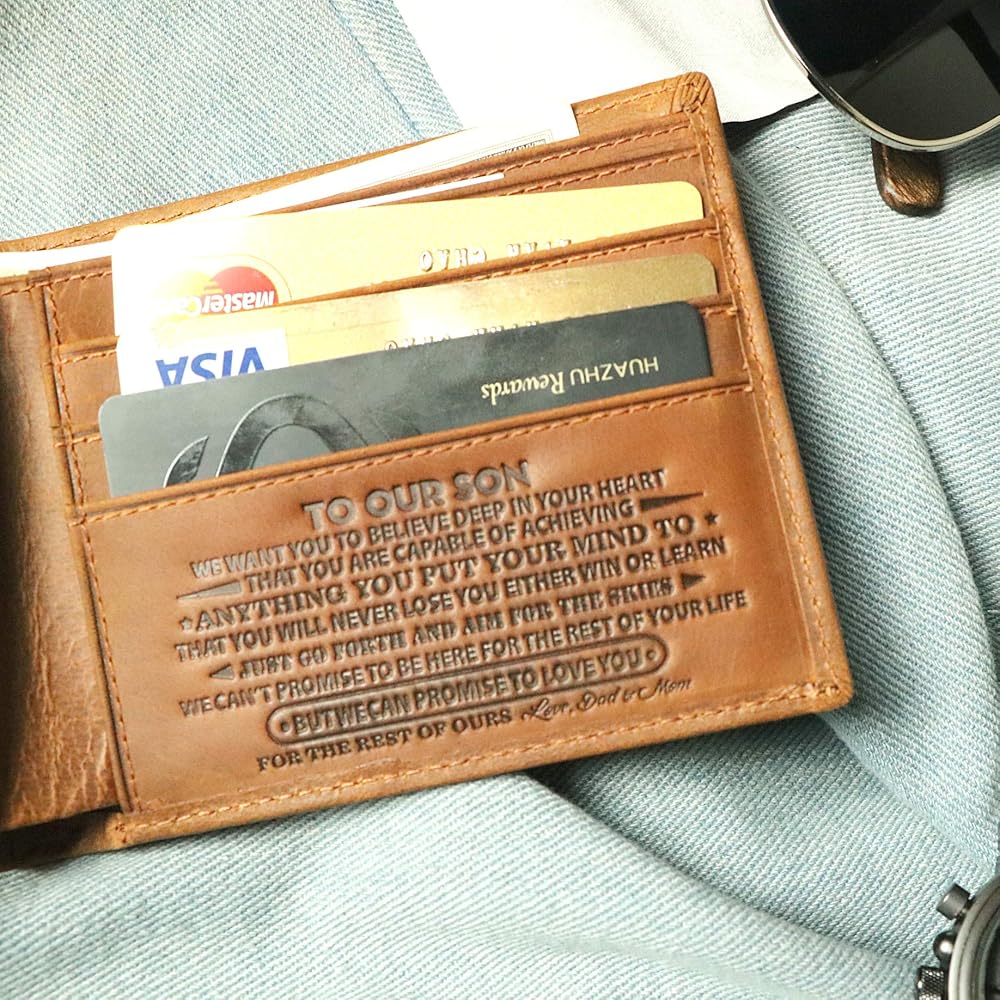 5. أفضل خدمة من منتجاتنا: نقدم ضمان رضا خالٍ من المخاطر بنسبة 100% - يتوفر استرداد كامل المبلغ إذا لم تكن راضيًا تمامًا. استرداد الأموال بالكامل أو استبدال مجاني لأي عيوب تحدث أثناء الإنتاج والتسليم. محفظة شخصية محفورة للرجال، محفظة ابن، محفظة من الأم والابن