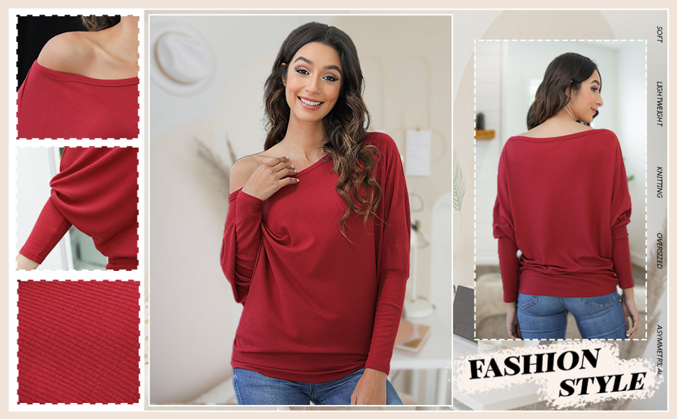 - نقاط بيع السترة: تصميم سفلي غير منتظم / رقبة مائلة / بدون أكتاف / محبوك / كم طويل / بلوفر / سادة / كم جناح الخفاش