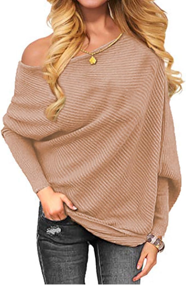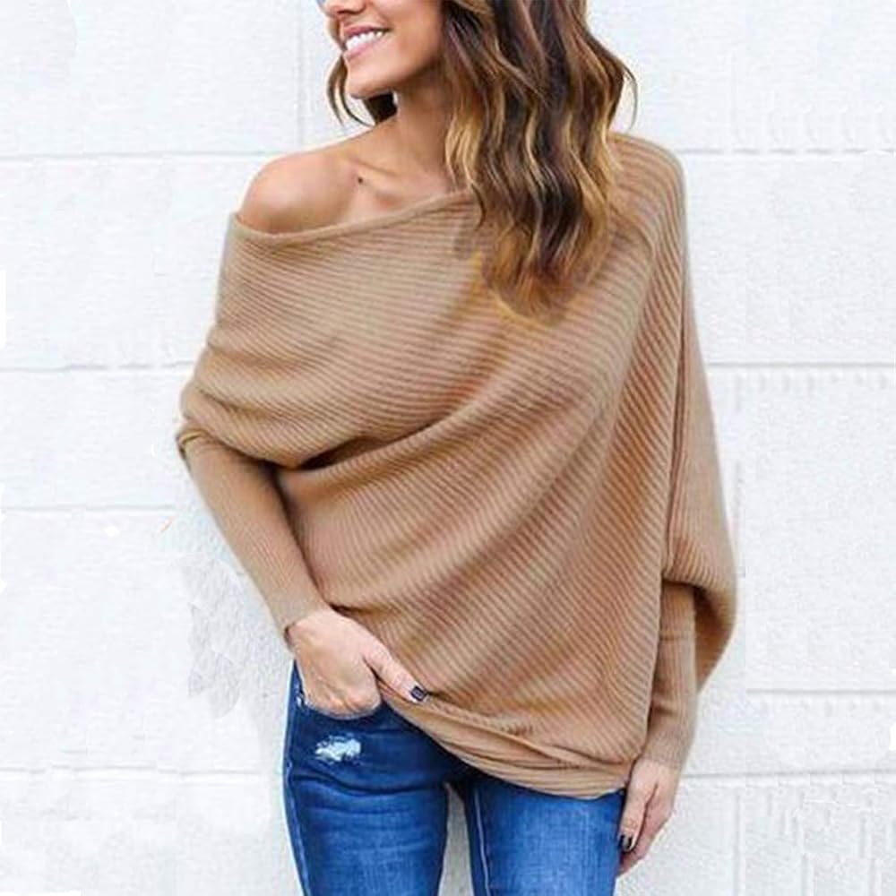سترة VOIANLIMO النسائية بدون أكتاف محبوكة بأكمام طويلة وفضفاضة صلبة