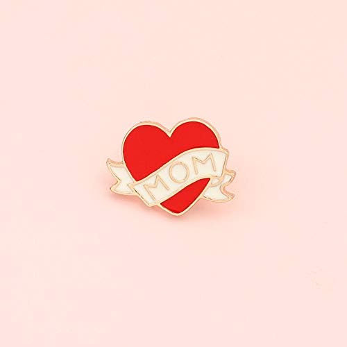 قلب من المينا باللون الأحمر مع دبوس وبروش آمن لكلمة MOM