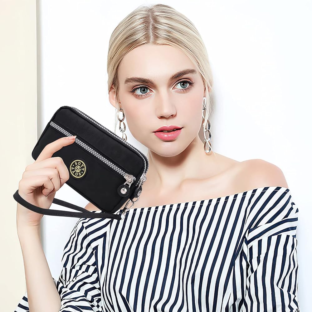 محفظة WITERY للسيدات بسحاب - محافظ نايلون مقاومة للماء مع حزام معصم قابل للفصل