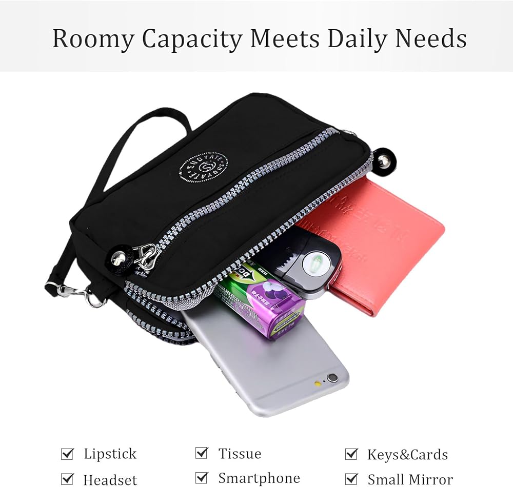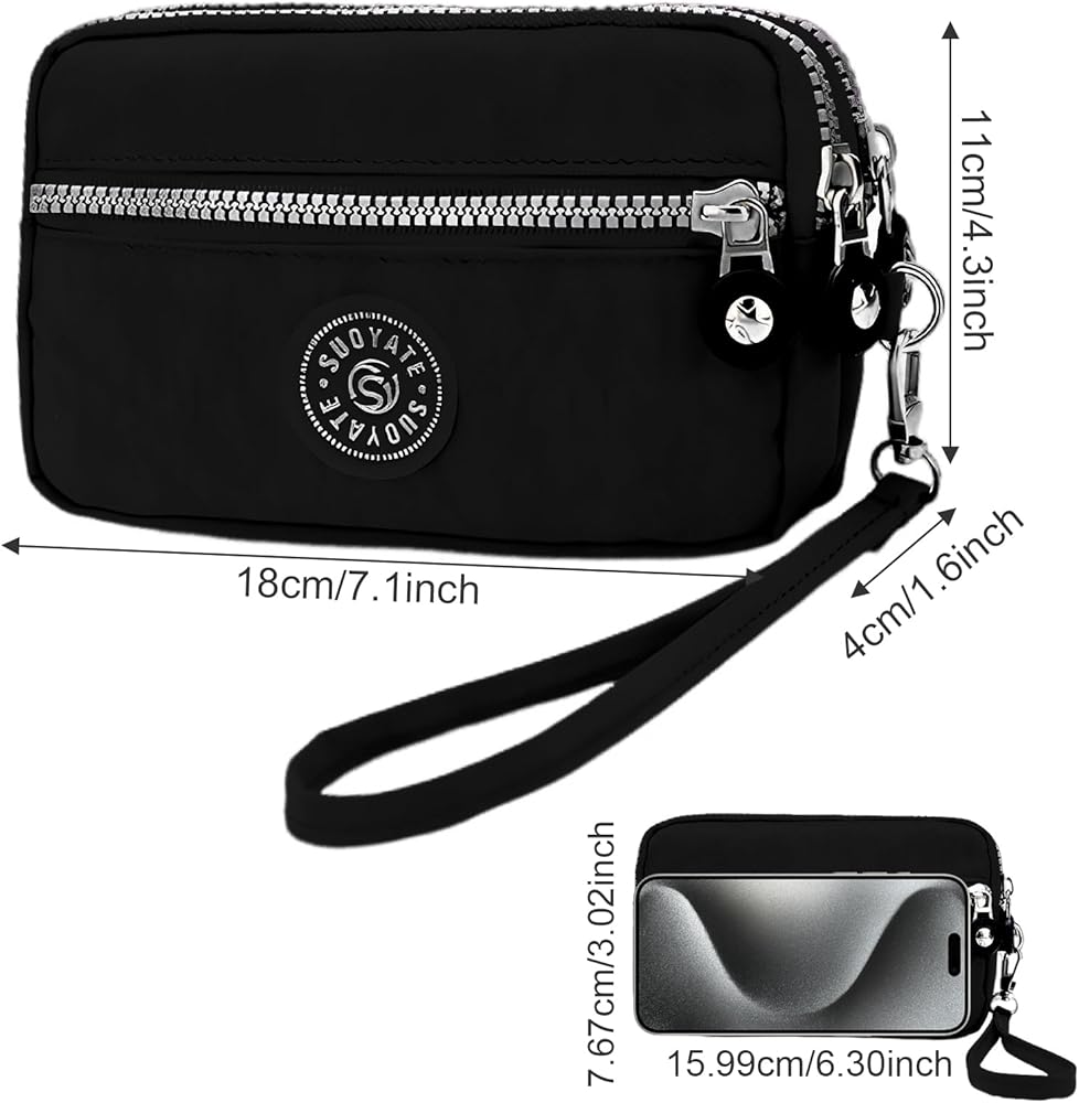 • ❄️MULTI-PURPOSE - 2 Main top zippered compartments with 1 front zipper pocket - Large capacity, Demension:6x2.4x3.9inches, super convenient for carrying personal stuffs like cellphones, cash, credit cards, keys