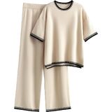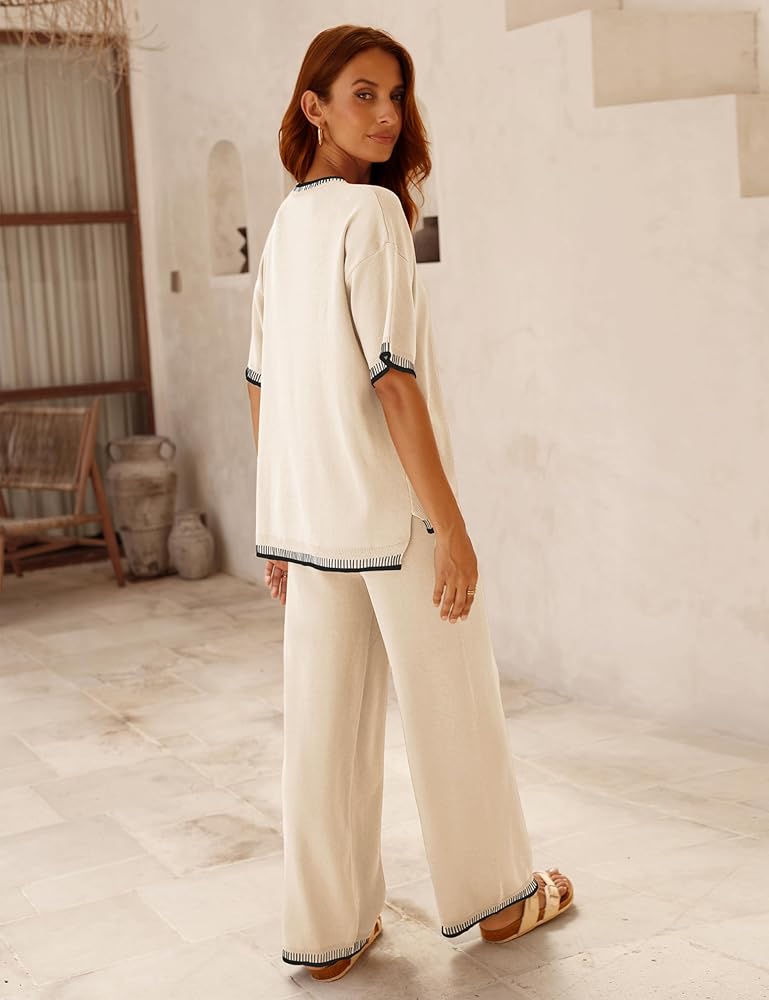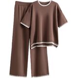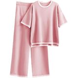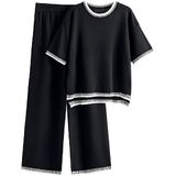 المزايا: ملابس نسائية مكونة من قطعتين تتكون من بنطال ناعم ومريح بأرجل مستقيمة مع حزام خصر مطاطي وسترة علوية متطابقة، كلاهما يتميز بزخرفة متباينة رائعة، مجموعة ملابس مريحة للسيدات، سراويل نسائية واسعة الخصر عالية الخصر، مجموعات سترات مريحة للنساء