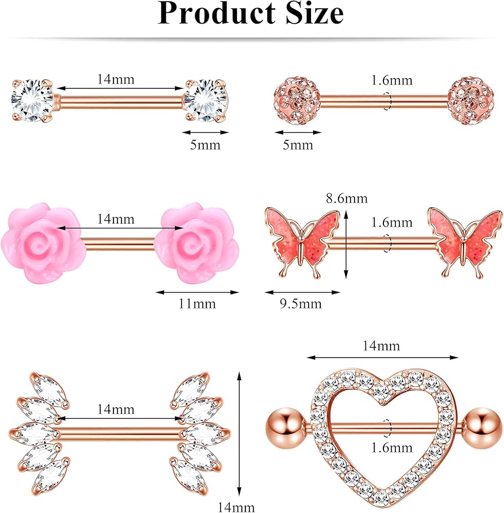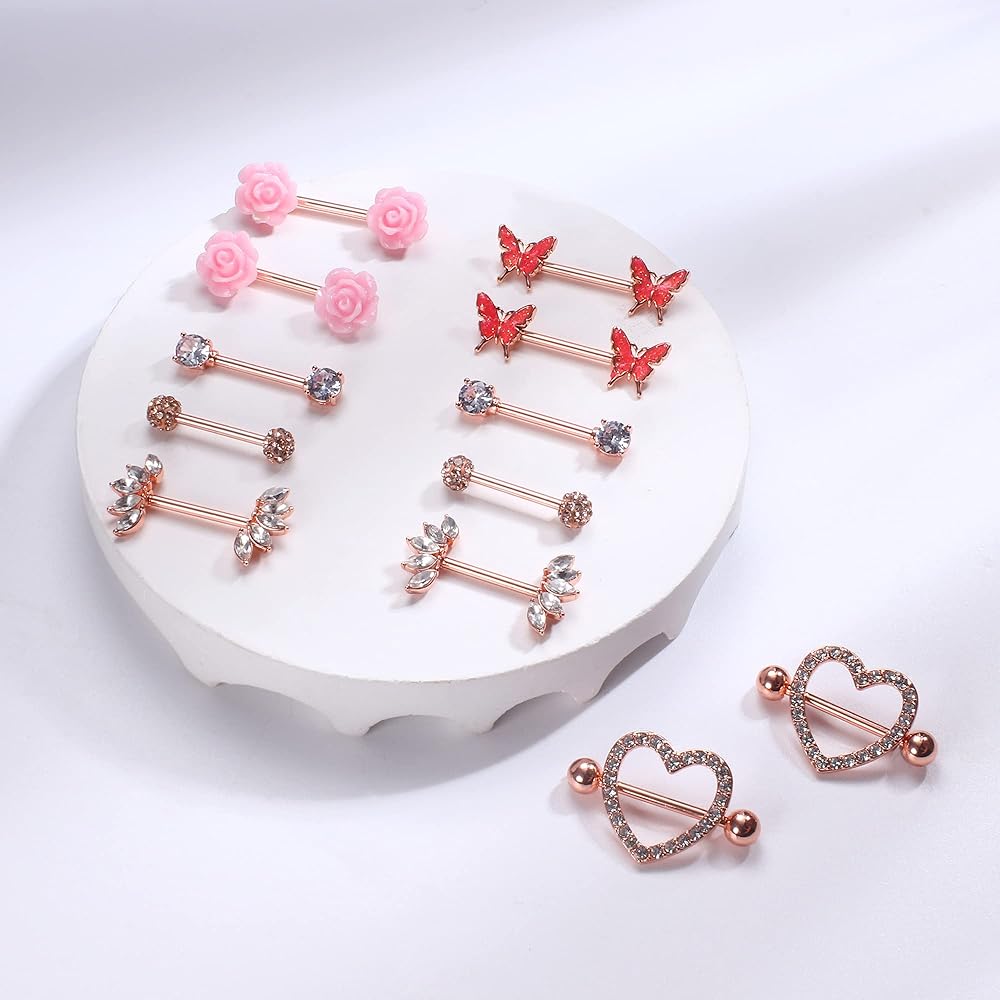 🌸حلقات الحلمة: يأتي طلب واحد مع 6 أزواج من حلقات الحلمة للنساء والفتيات، وأشكال مختلطة، وحلقة حلمة على شكل قلب، وحلقة حلمة على شكل زهرة، وحلقة حلمة على شكل فراشة. توفر لك التنوع والاختيار. جميلة ورائعة، أنماط مختلفة لاستخدامك اليومي.