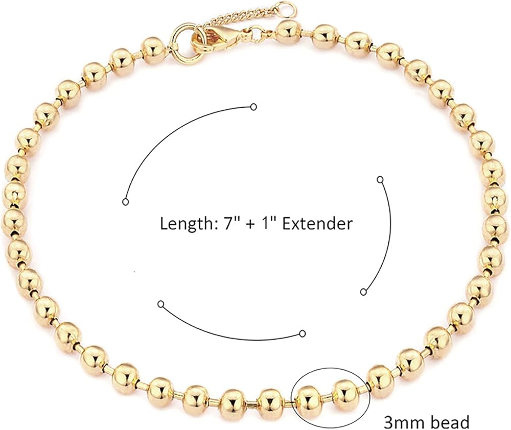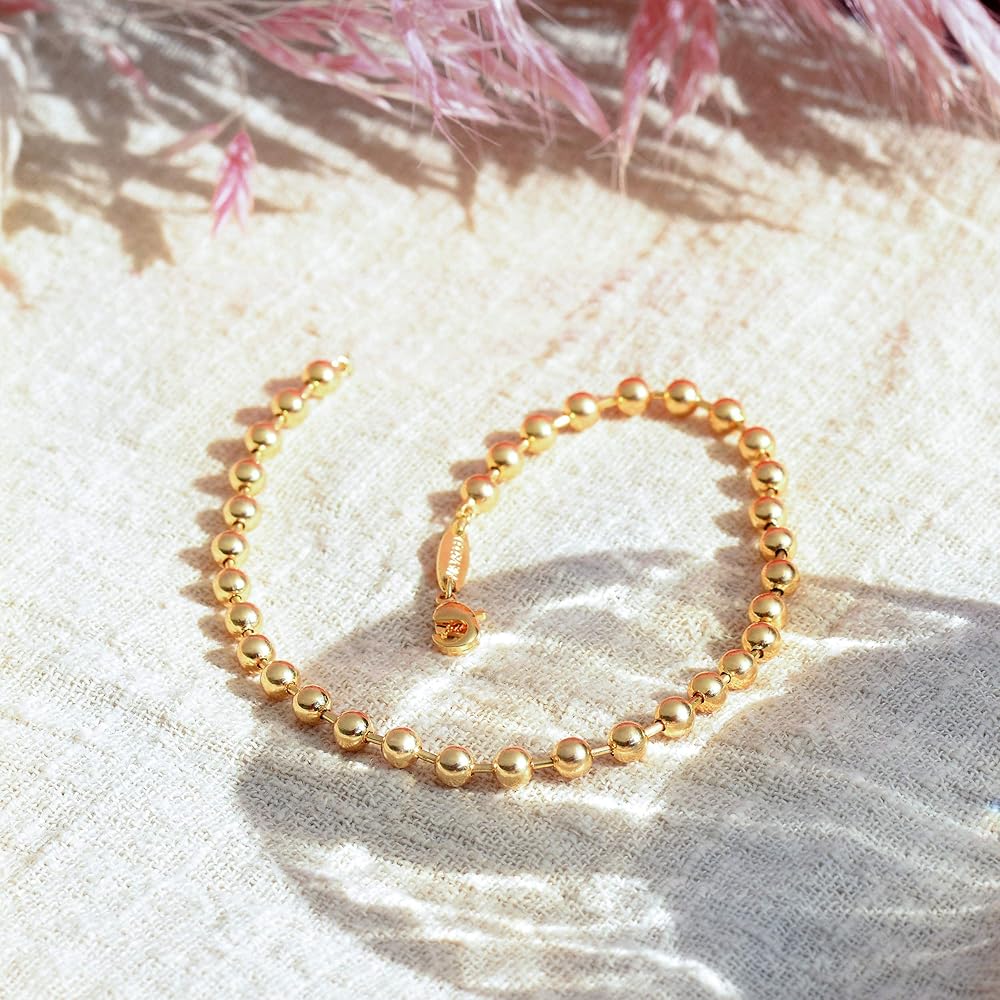 سوار الخرز الذهبي: هذا السوار المصنوع من الخرز يعطي مظهر البساطة والأناقة والجريئة. سوار سلسلة خرز 3 مم يمثل الهدية المثالية لنفسك أو لشخص مميز. يبدو السوار رائعًا بمفرده أو مع طبقات