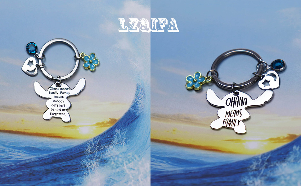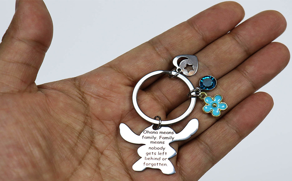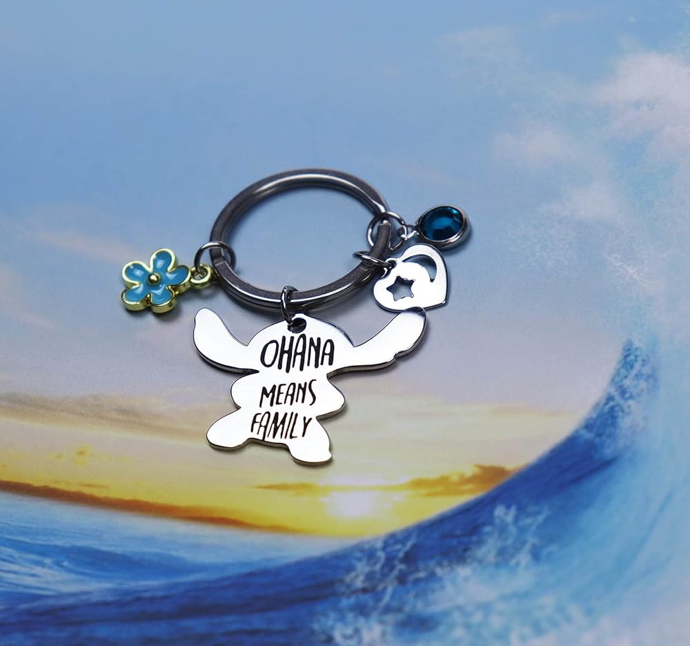 - سلاسل المفاتيح بالغرز: "OHAHA MRans FAMILY" - "Ohana تعني العائلة، العائلة تعني عدم ترك أحد خلفه أو نسيانه".