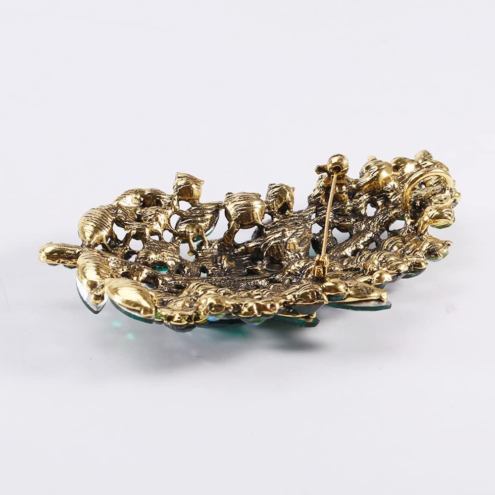 دبوس بروش على شكل باقة زهور كبيرة الحجم من الكريستال النمساوي للنساء لحفلات الزفاف باللون الذهبي