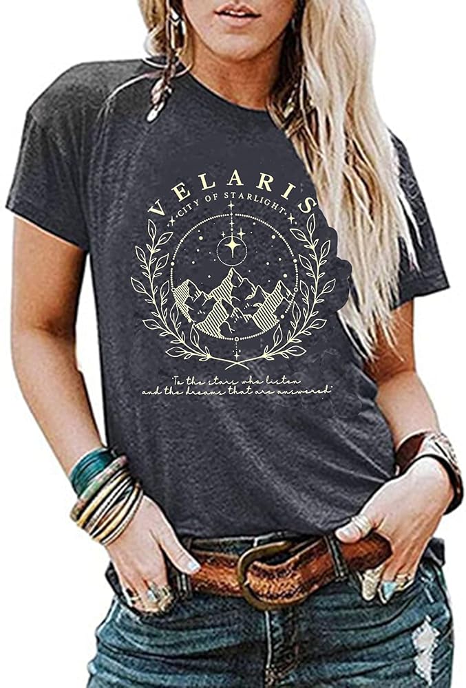 【المميزات: تي شيرت Acotar Velaris، للنجوم الذين يستمعون والأحلام التي يتم الرد عليها، تي شيرت مطبوع عليه حروف، تي شيرتات محكمة الأحلام. تصميم جبال الملاعب الليلية، رقبة دائرية، كم قصير، ملاءمة رائعة وملمس من المواد.