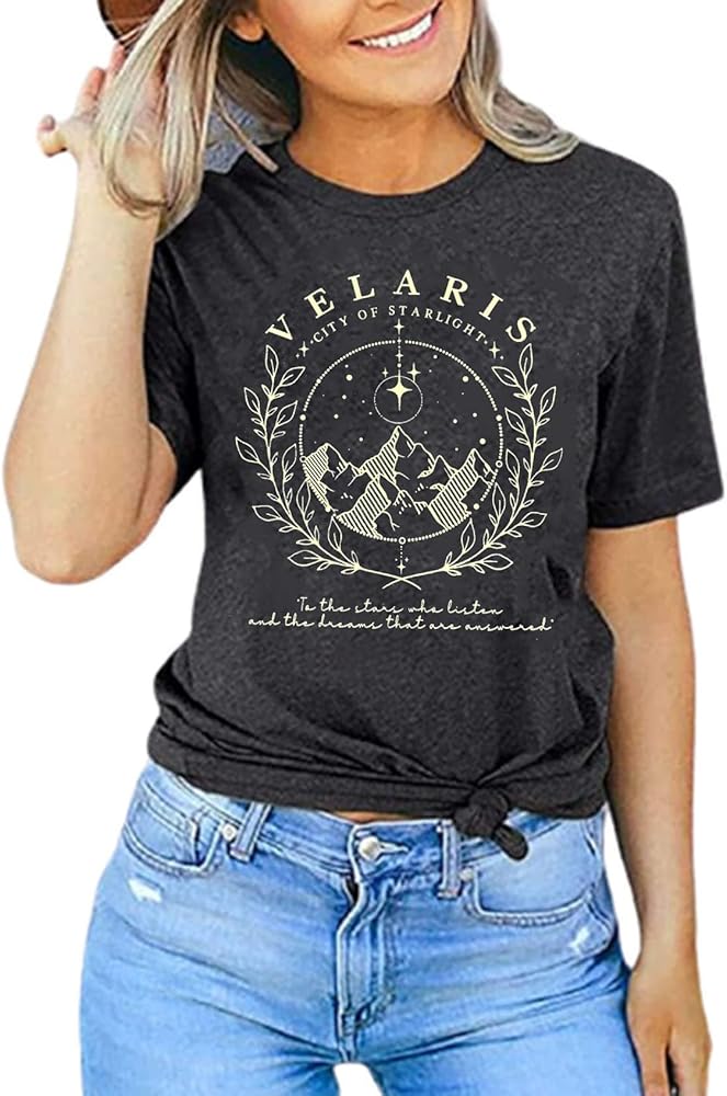 قميص Acotar Velaris تي شيرت نسائي رمز المحكمة الليلية تي شيرت مضحك مطبوع عليه حروف قصيرة الأكمام تي شيرت هدايا قمصان أشواك ومحكمة الأحلام تي شيرت علوي