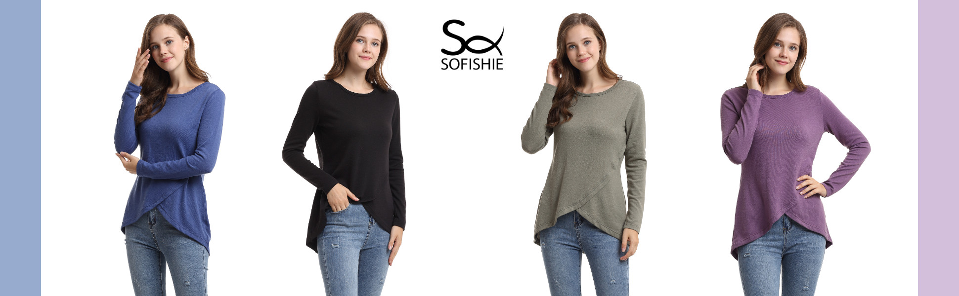 بلوزة Sofishie بياقة دائرية وحاشية عالية ومنخفضة