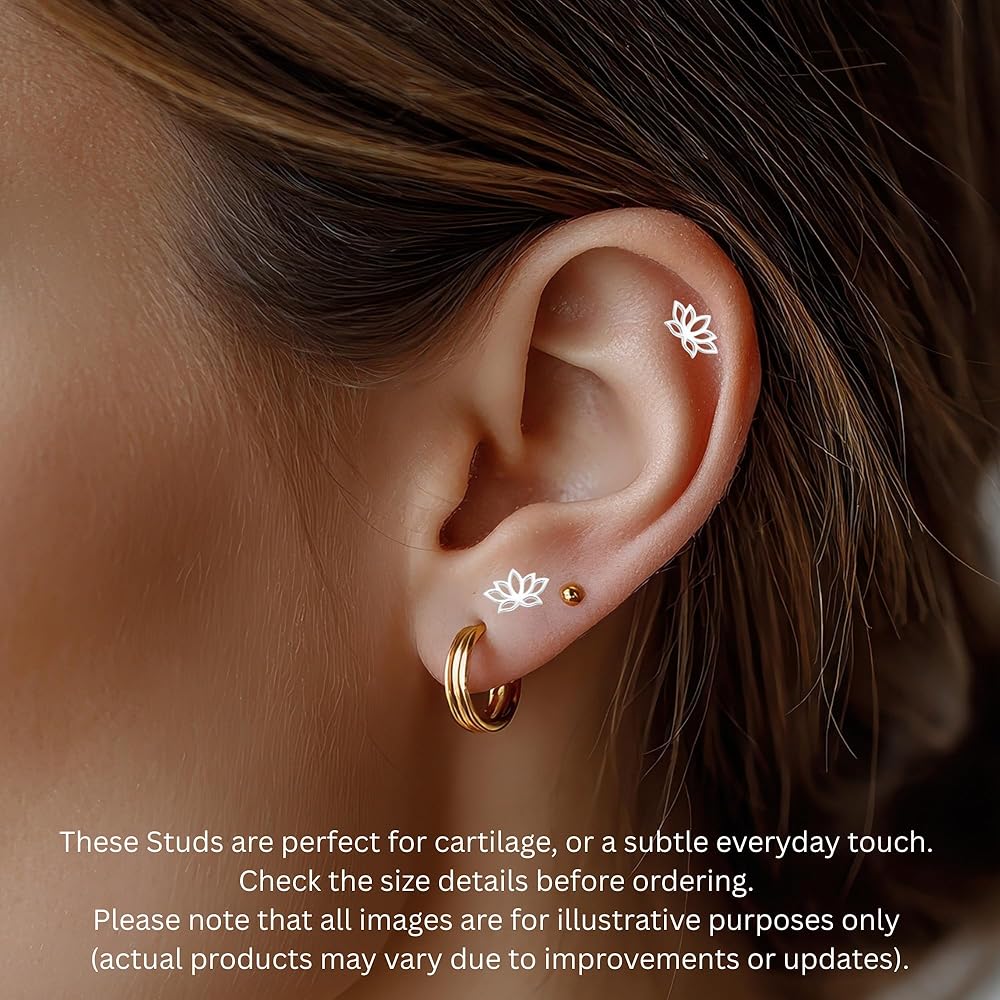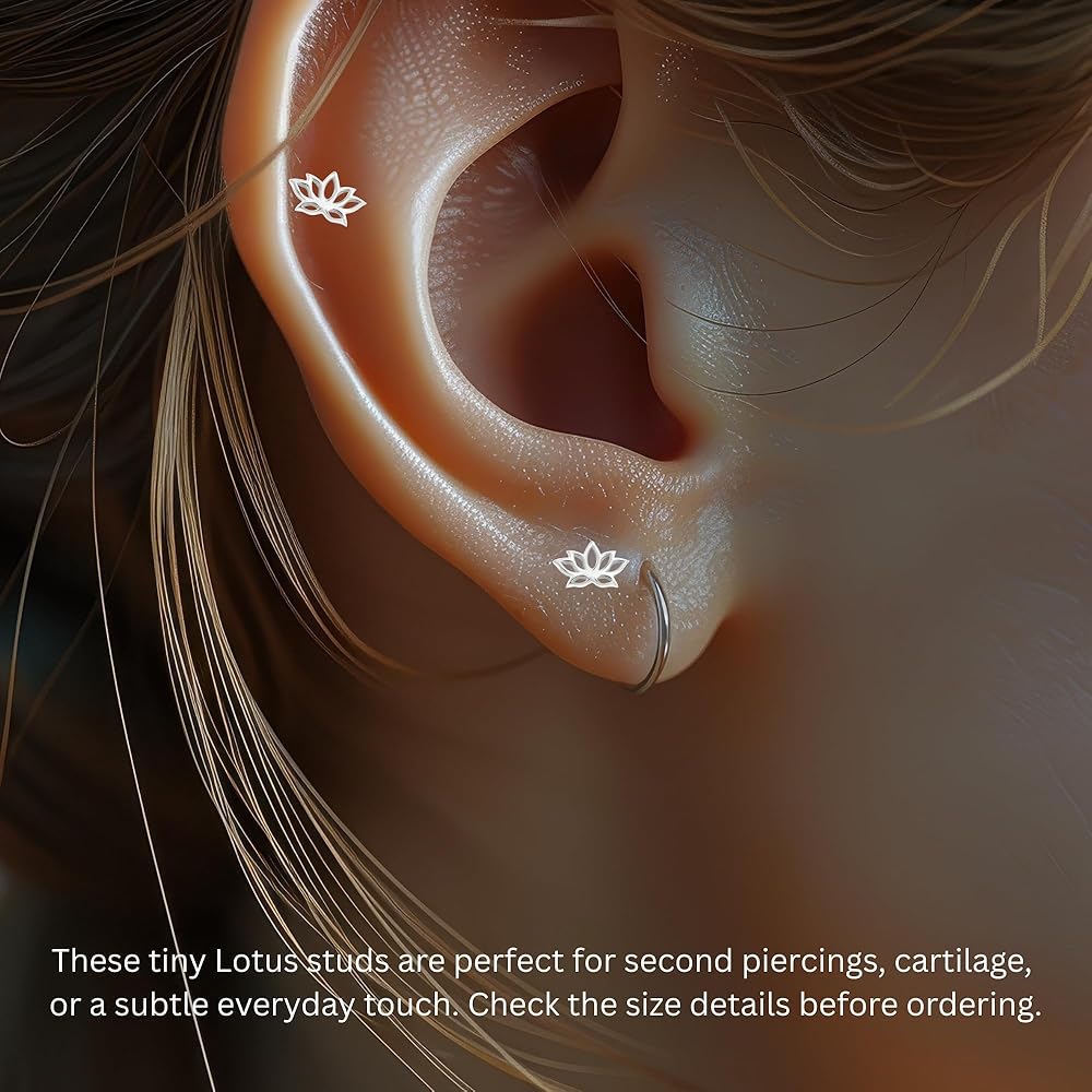 لوتس .925 أقراط من الفضة الاسترليني صغيرة جدًا، ثقب متعدد، للغضاريف، الحلزون، ثقب الأذن الثانية