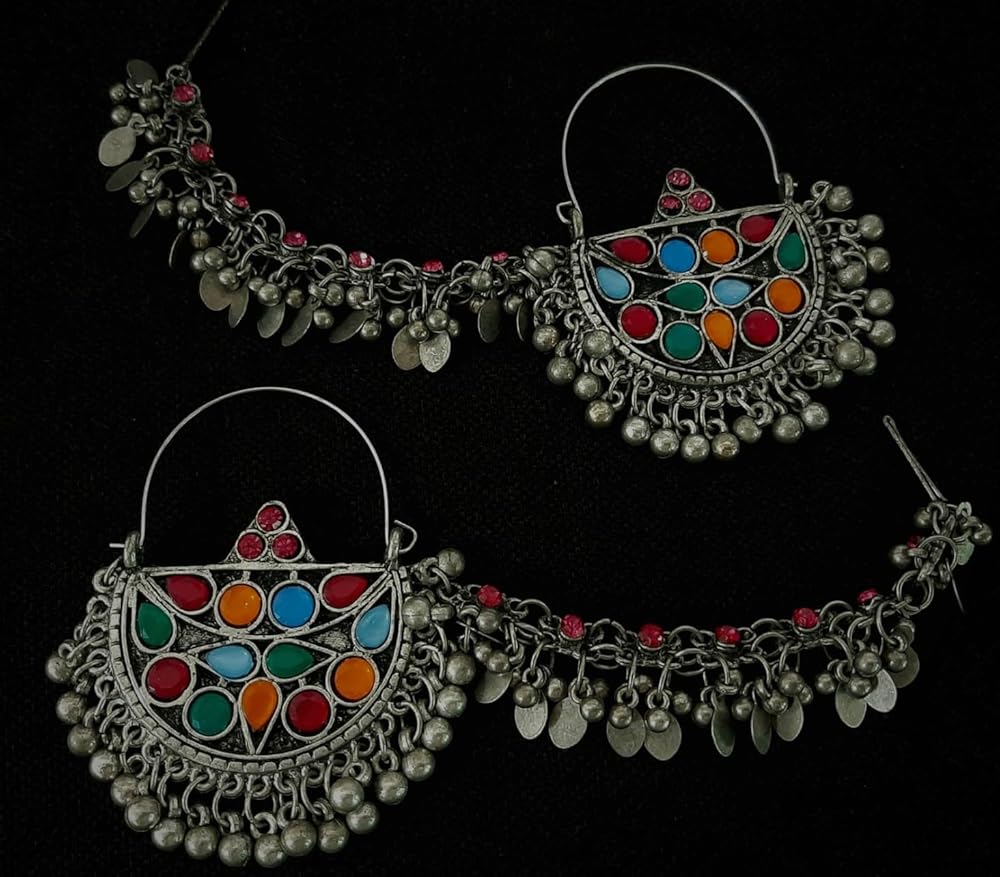 المواد: سبيكة ، اللون: الفضة اليدوية المعادن مانغ تيكا أقراط ، التصميم: Jhumka Jhumki اليدوية طول القرط 2.6 بوصة تقريبًا
