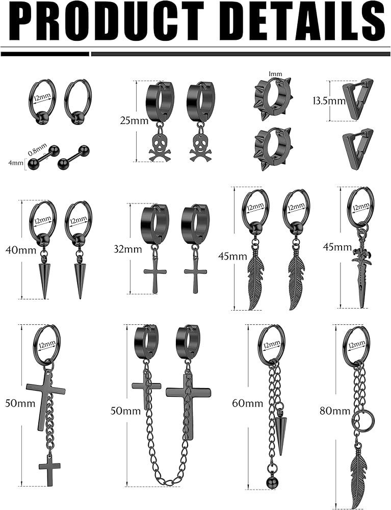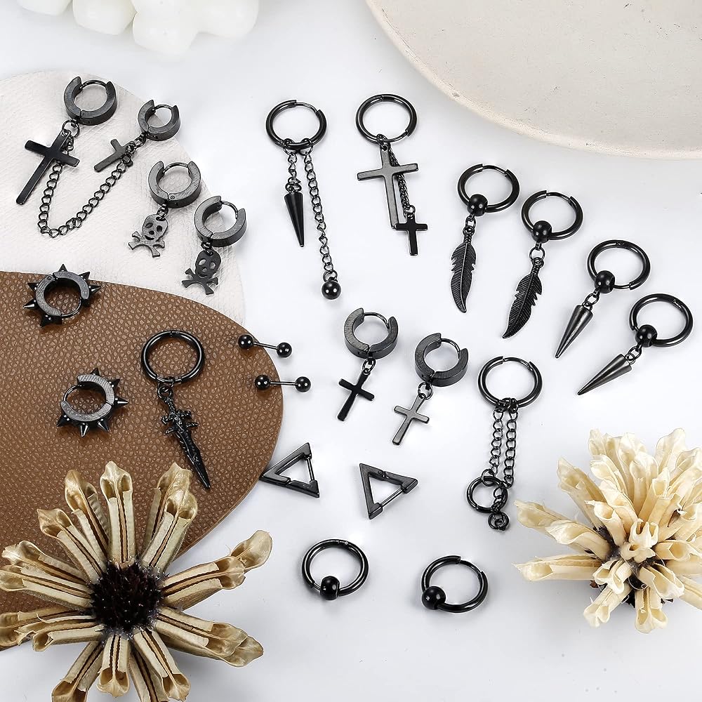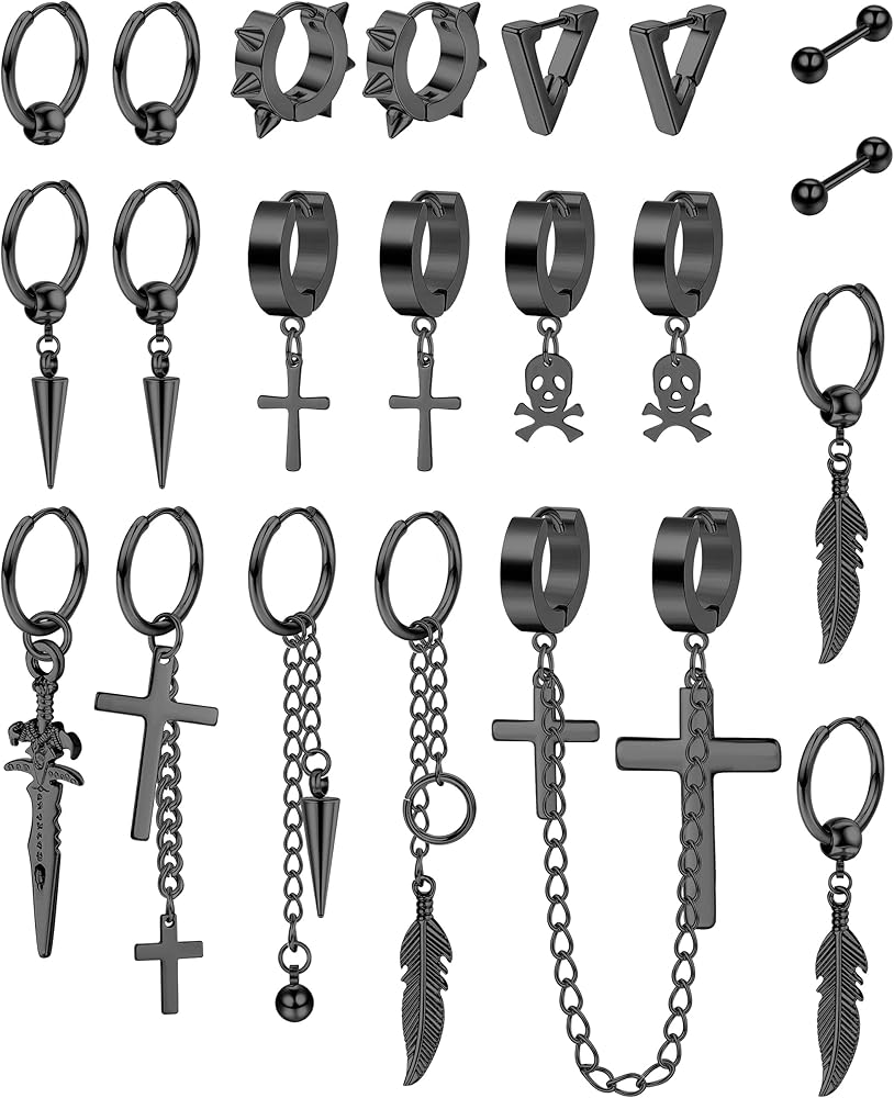 ✨تشمل العبوة: 21 قطعة من الأقراط الرجالية مع صندوق، بما في ذلك: الأقراط المتقاطعة، وأقراط الريش، وأقراط الأثقال، والأقراط المتدلية، والأقراط الحلقية وما إلى ذلك. هذه الأقراط الرجالية مليئة بالشخصية والرائعة، مما يوفر لك مظهرًا جذابًا.