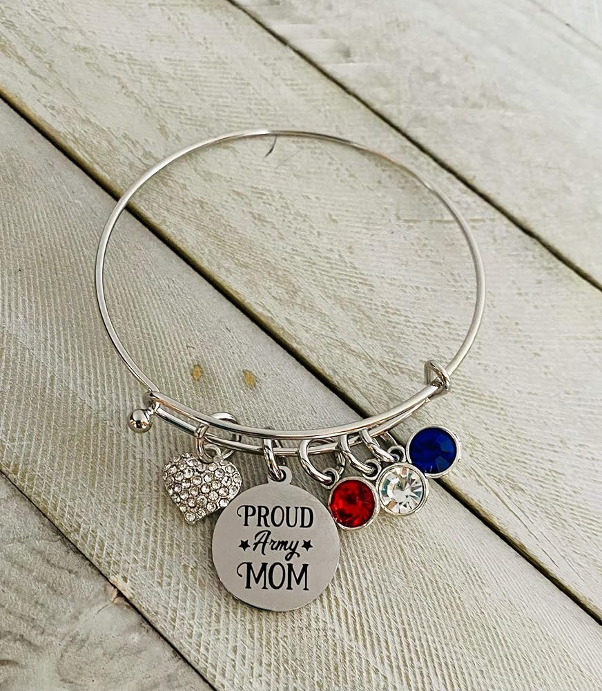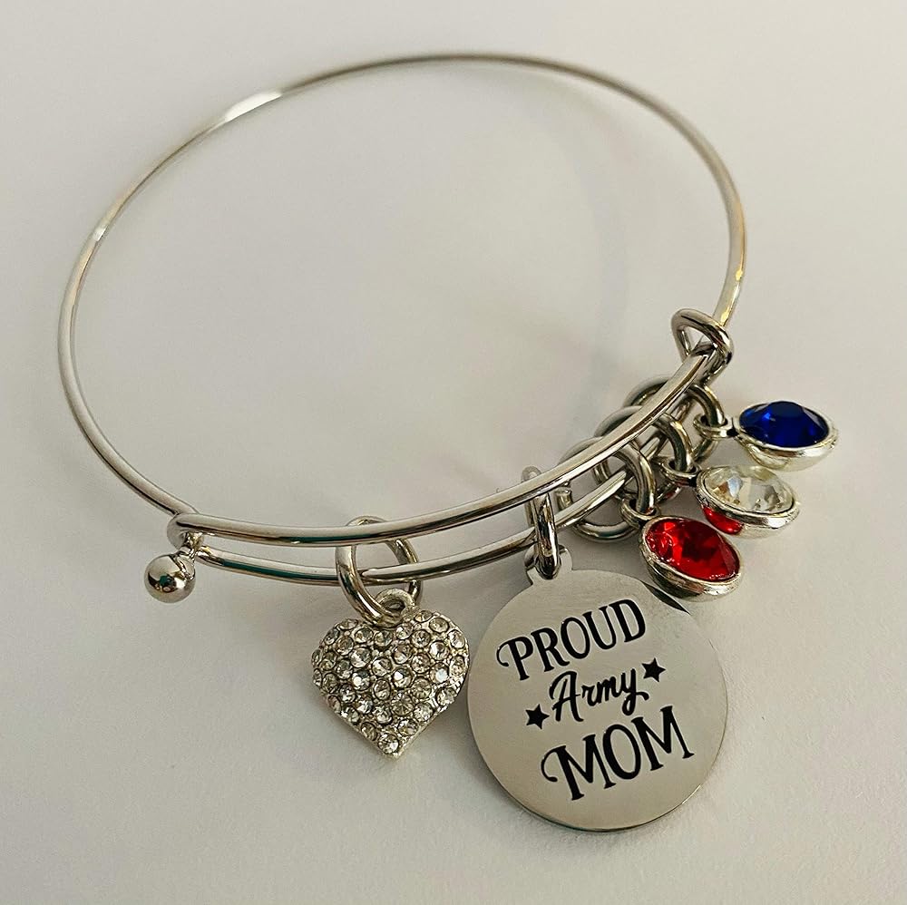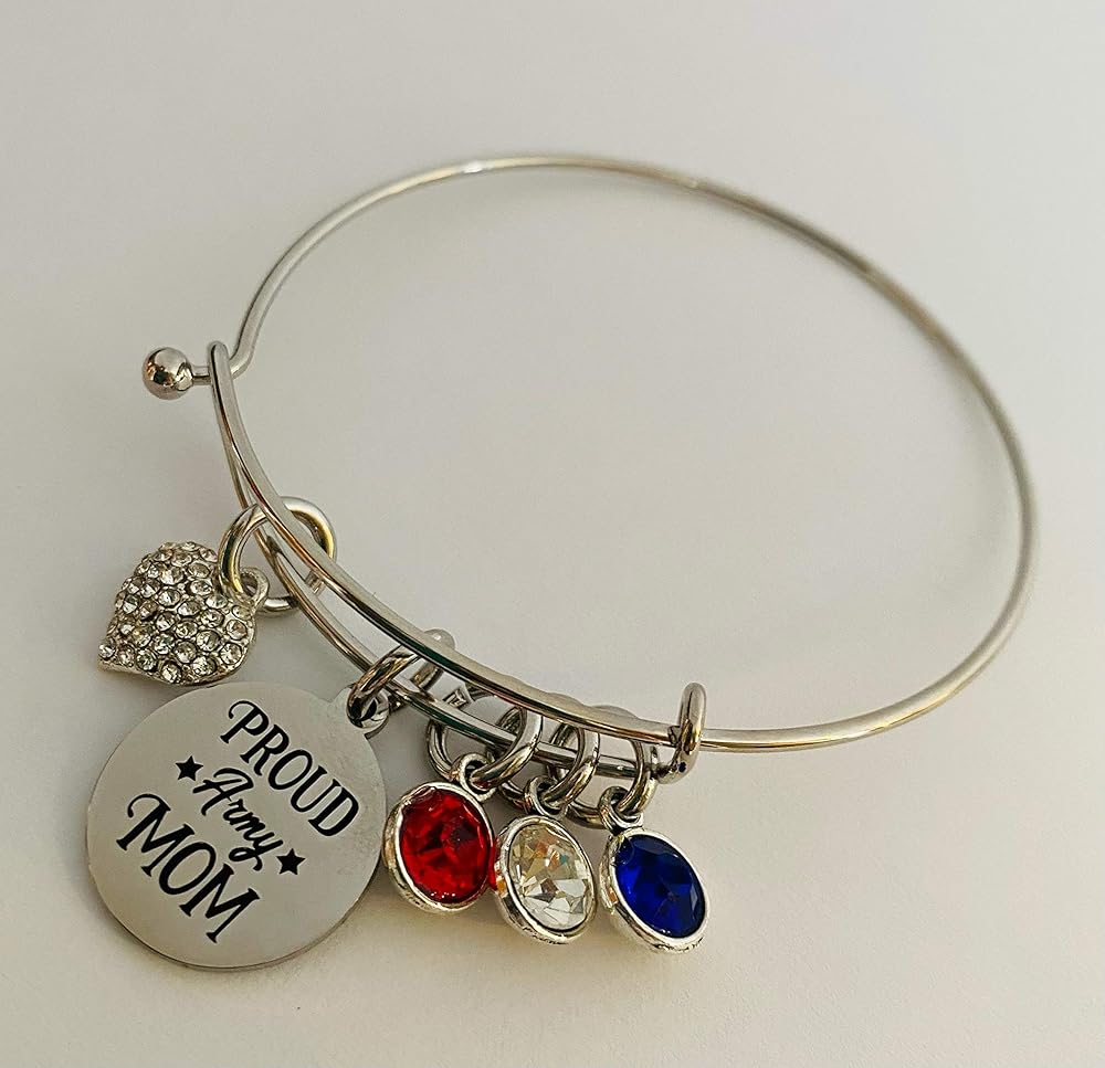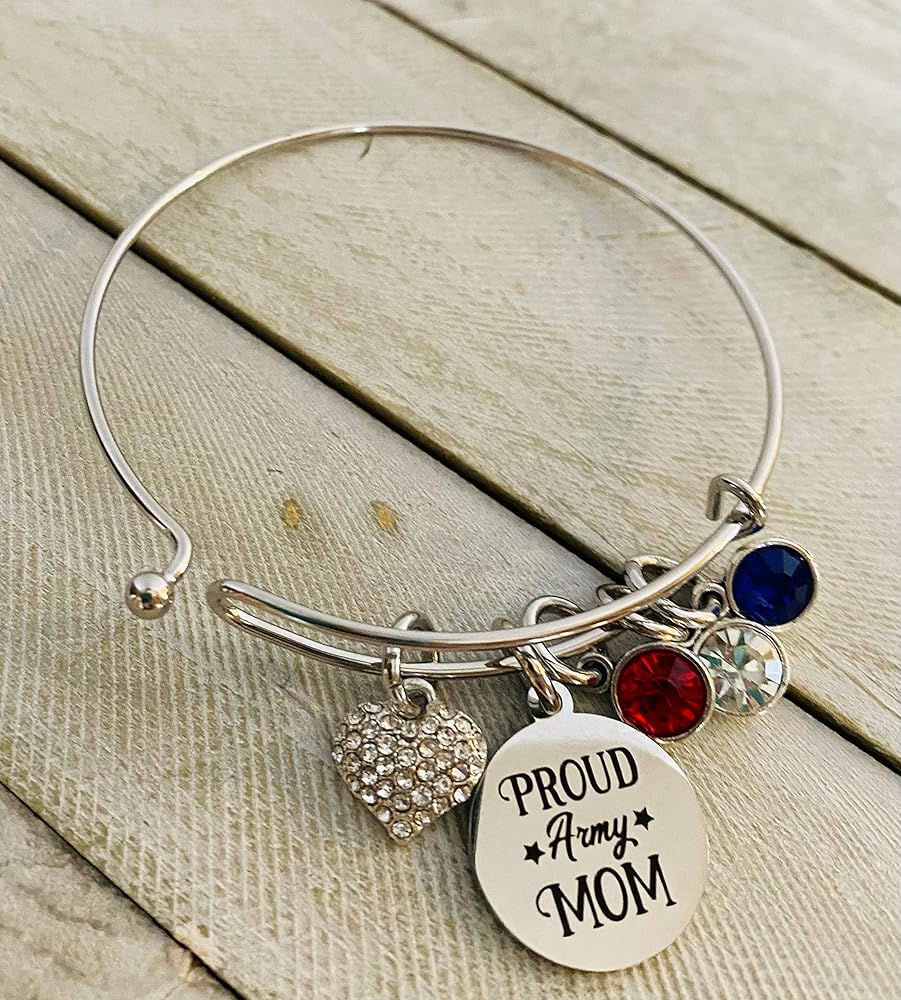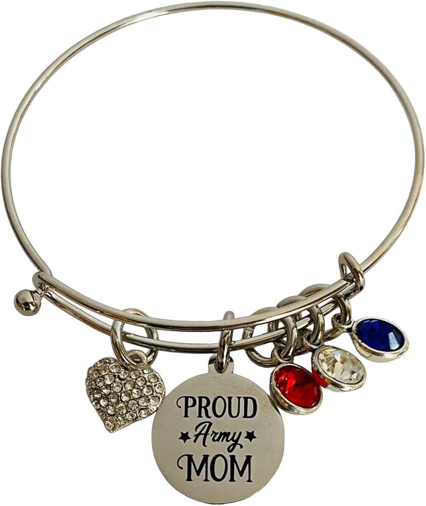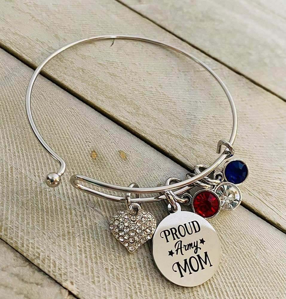سوار إسورة لأمي الجيش رائع أحمر أبيض وأزرق لأم الجيش هدية للنساء, Medium, ستانلس ستيل