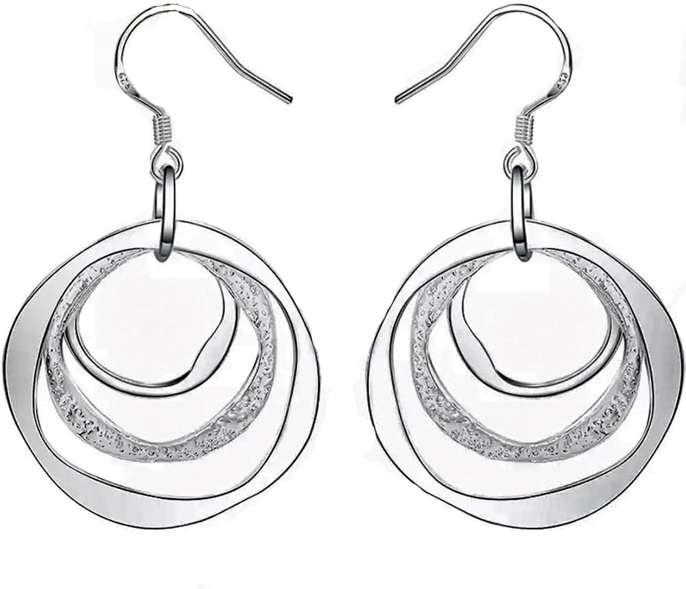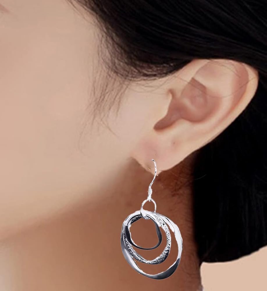 - ** النمط ** اسقط وتدلى بثلاث دوائر هندسية. فضة استرلينية لامعة لالتقاط ضوء الشمس أو ضوء الشموع. يمكن ارتداء الأقراط مع الملابس الكاجوال أو الرسمية.