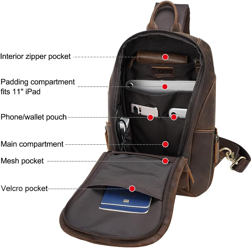 【للبقاء منظمة 】تم تصميم حقيبة الصدر بعناية مع جيب أمامي بسحاب وجيب خلفي بسحاب لهاتفك أو حافظة البطاقة، وجيبين جانبيين قابلين للتعديل لزجاجة المياه والمظلة. يشتمل الجيب الرئيسي الكبير على جيب بسحاب، وغطاء مبطن للكمبيوتر اللوحي، وثلاثة جيوب منزلقة، وجيب شبكي وجيب فيلكرو، مما يجعل من السهل استيعاب أغراضك الخارجية والحفاظ عليها منظمة.