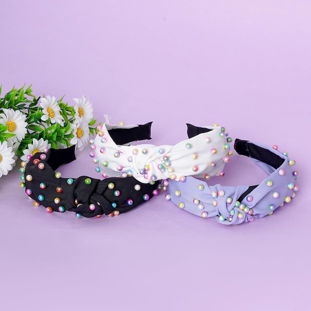 3 x Pearl Knot Headband Colorful Jewelry Headband