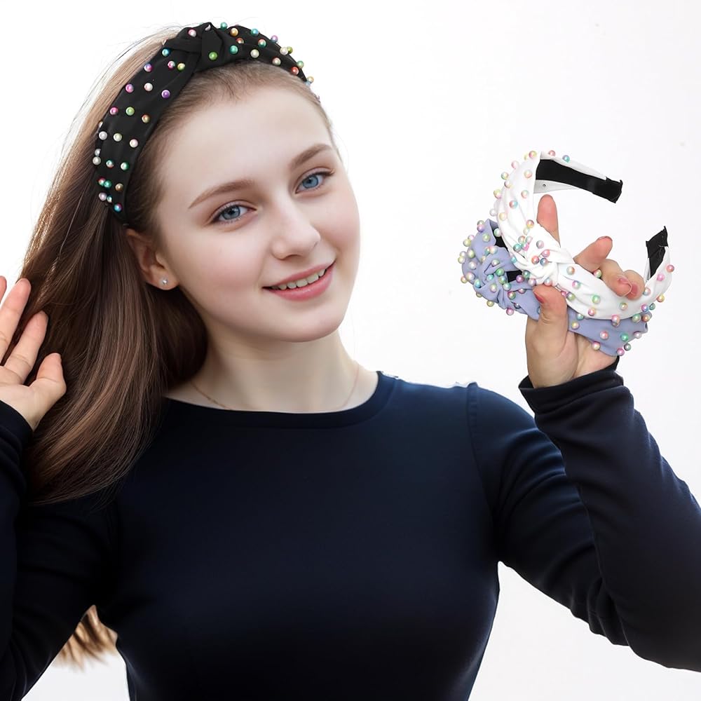 • Great hair decoration: The faux pearl headbands are designed with cross knots and decorated with colorful faux pearls. Keep your hair neat and tidy when you put on makeup, wash your face or any time.