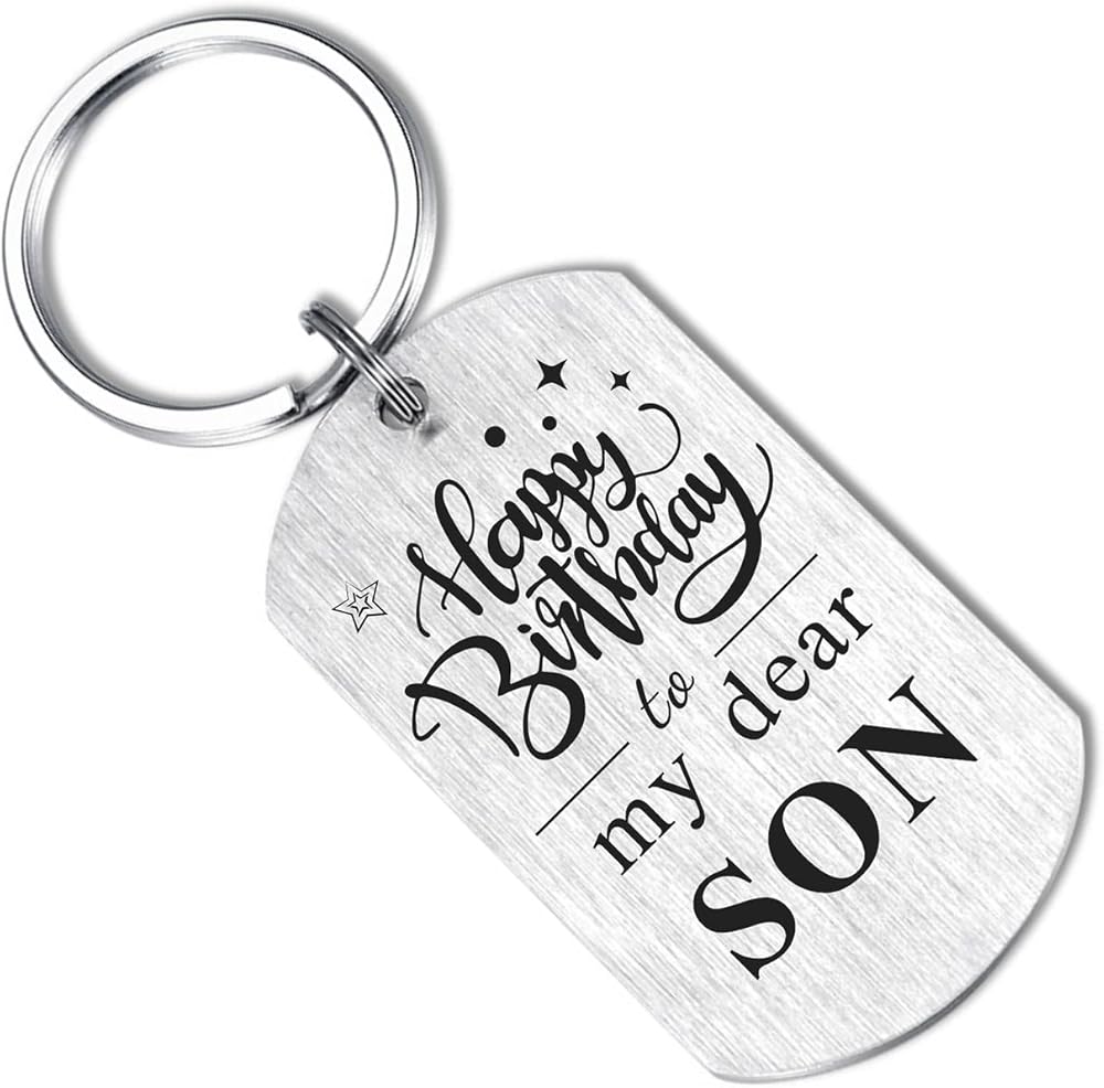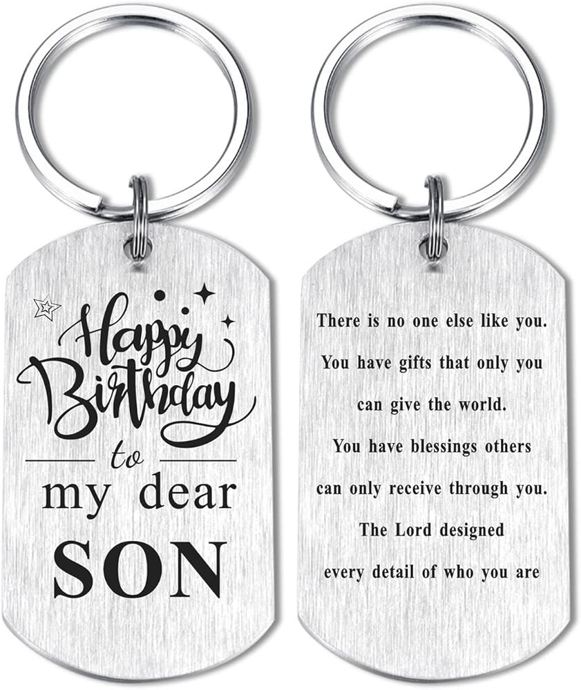 Son Birthday Gifts Ideas, Double sides laser engraved keychian, One side engraved " Happy Birthday To My Dear Son". The other side engraved " There is no one else like you. You have gifts that only you can give the world. You have blessings others can only receive through you. The Lord designed every detail of who you are"