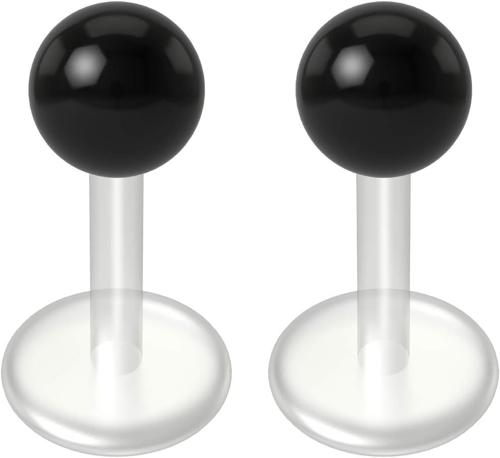 IMPLANT-GRADE BIOFLEX - These black labret 16g are made from implant-grade flexible bioflex material which is the best choice for initial piercings and sensitive skin. The bendable bioplast black labret studs 16g are light-weight and do not weigh down your piercing. Wear continuously with peace of mind. These 16g bioplast labret are hypoallergenic, lead-free, nickel-free and bio-compatible