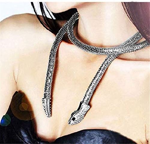Snake Choker Necklace Costume Halloween Statement Snake Jewelry for Women Silver Gold Retro Snake Shape Collar Necklace Curved Bar Design Adjustable