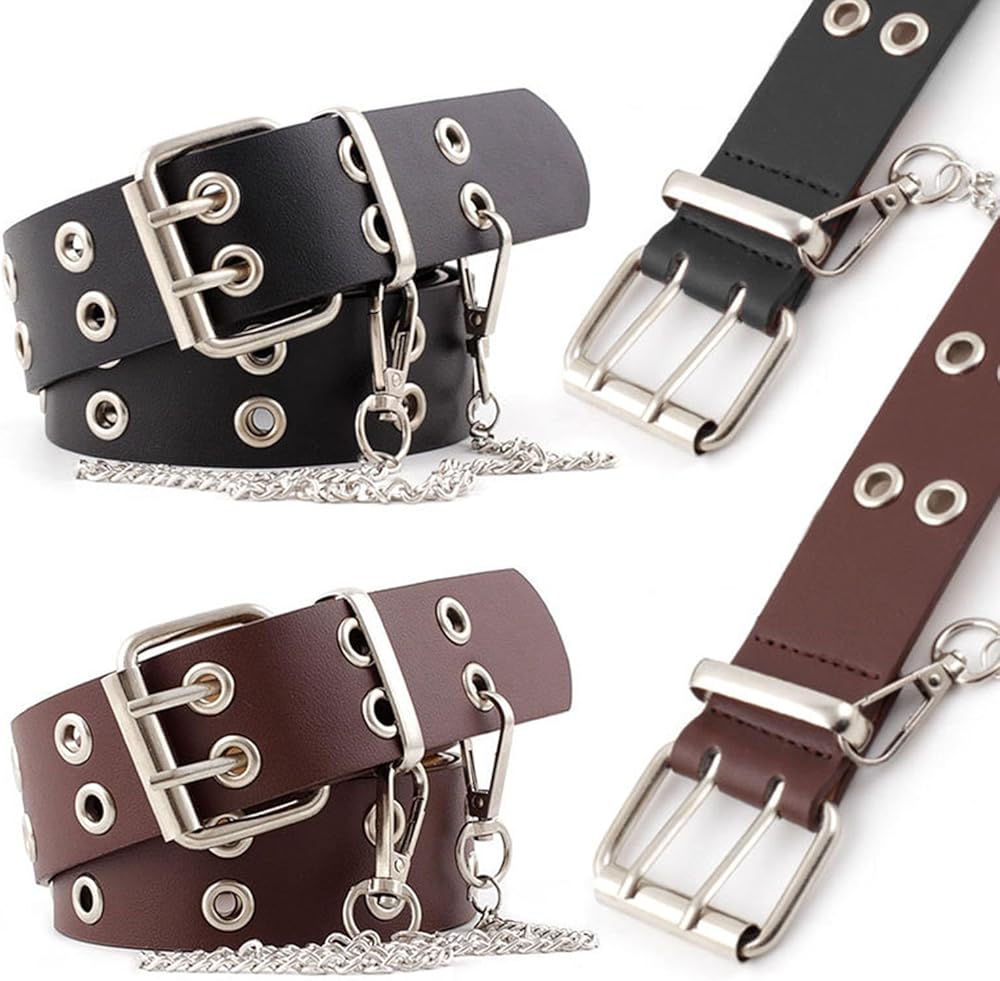 Stylish Punk Belt: The double prong buckle really compliments the belt style and keeps the belt secure around your waist. The width of the buckle is about 1.97". Stylish square buckle match with studded grommet strap. This punk belt will easily give your stylish look. This belt is a great addition for any punk/goth/etc look for women.
