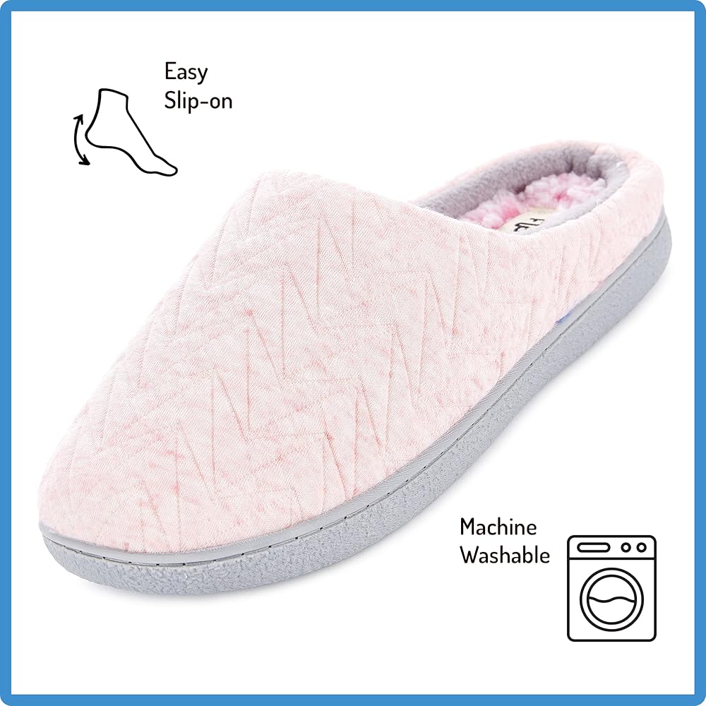 STRONG AND DURABLE: Apart from the supportive triple memory foam padded footbed which will mold to your foot, these clog slippers for women and girls of all ages have a Quilted Knit upper, a Beautiful geometric stitch detail and a flexible thermoplastic rubber sole, which is wear and slip resistant. Pretty yet durable, a pair of unique house slippers you can really count on.