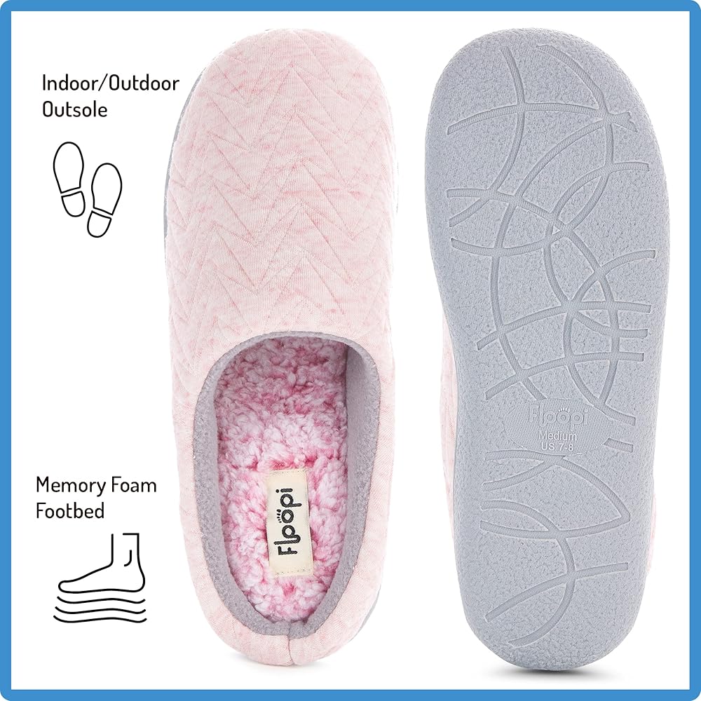 IDEAL FOR BOTH INDOOR AND OUTDOOR USE: The Floopi Geometric quilted style slippers can be worn around the house, bedroom, spa or beauty salon and their slip resistant rubber sole makes them suitable even for outdoor use. Cute yet reliable, these fluffy mule slippers are the best choice when it comes to comfortable and durable house wear.