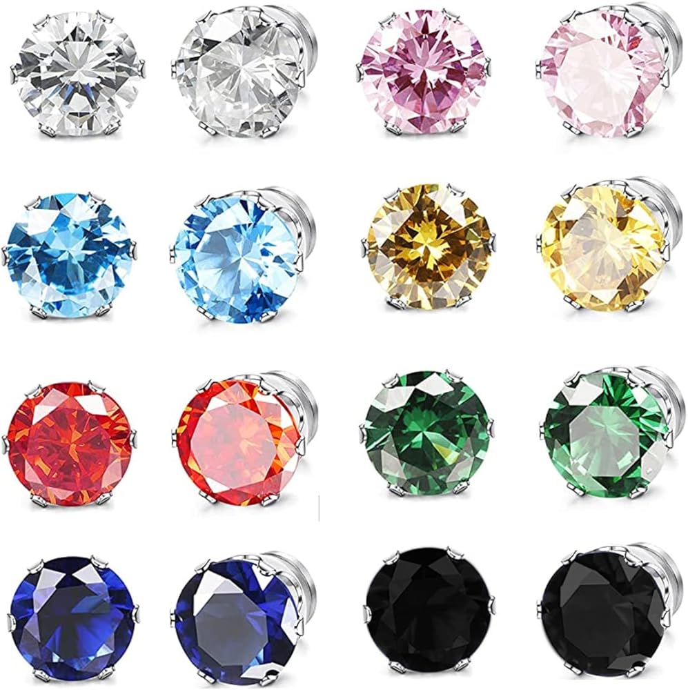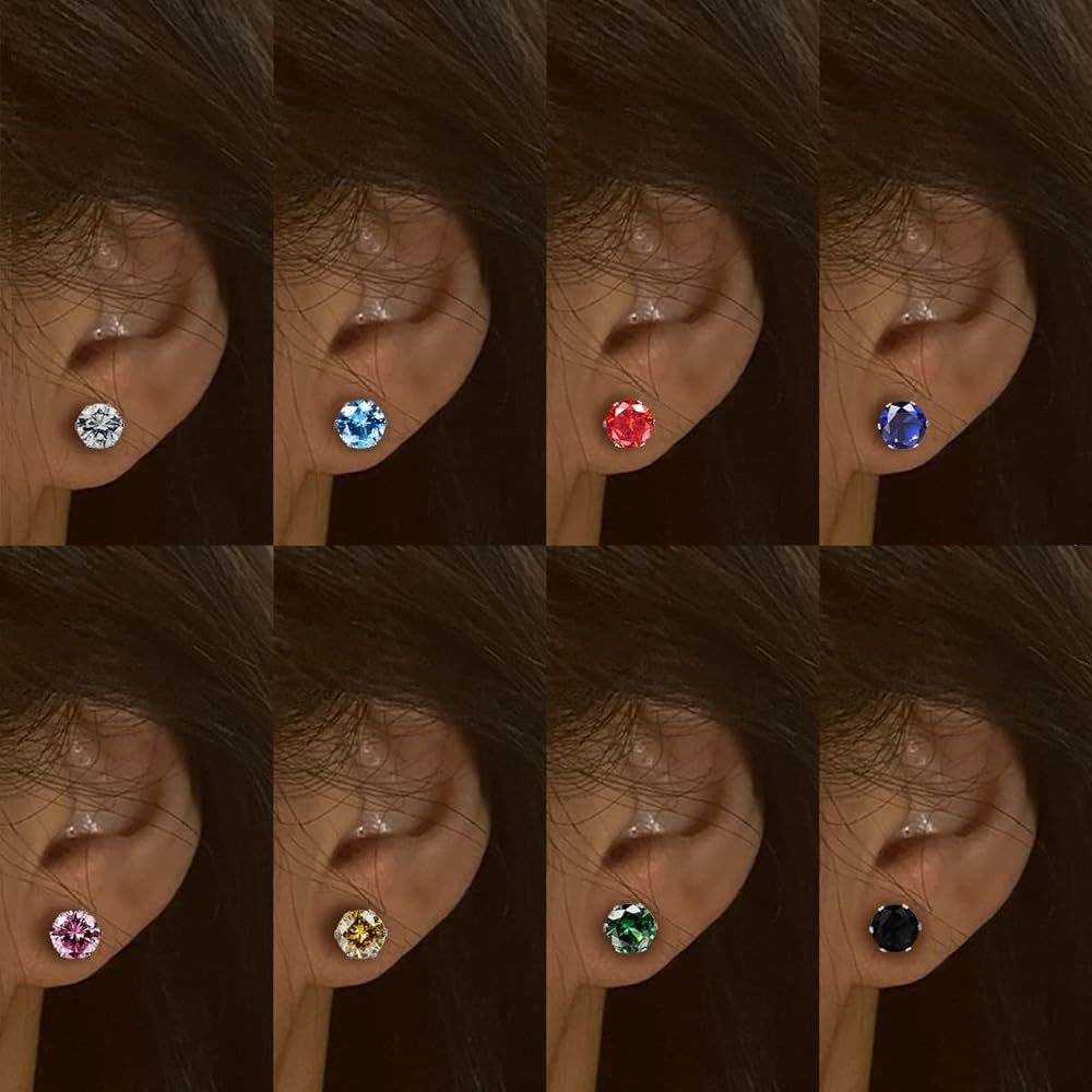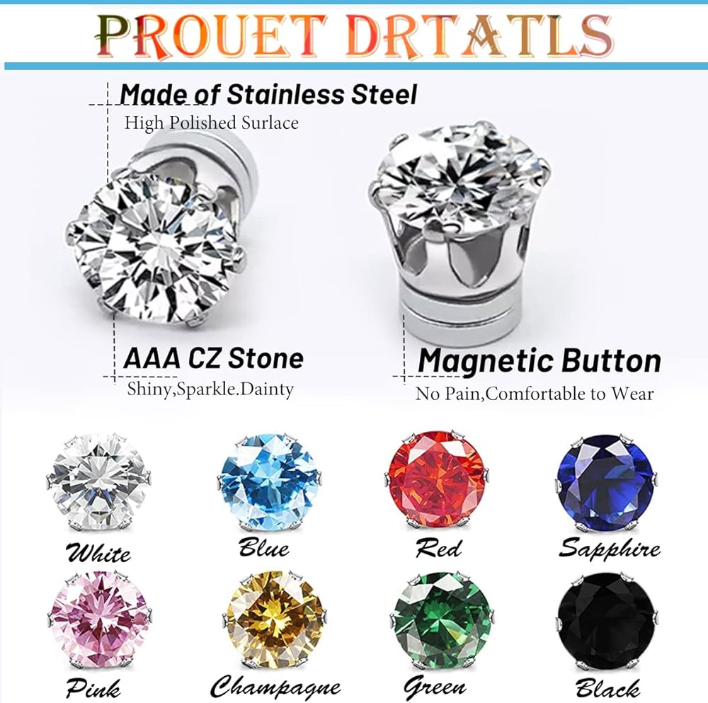 • Set:One set of magnetic stud earrings includes 8 pairs, different colors cubic zirconia to meet your needs for multiple sizes, you can try different colors every day to match the look.