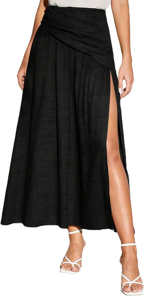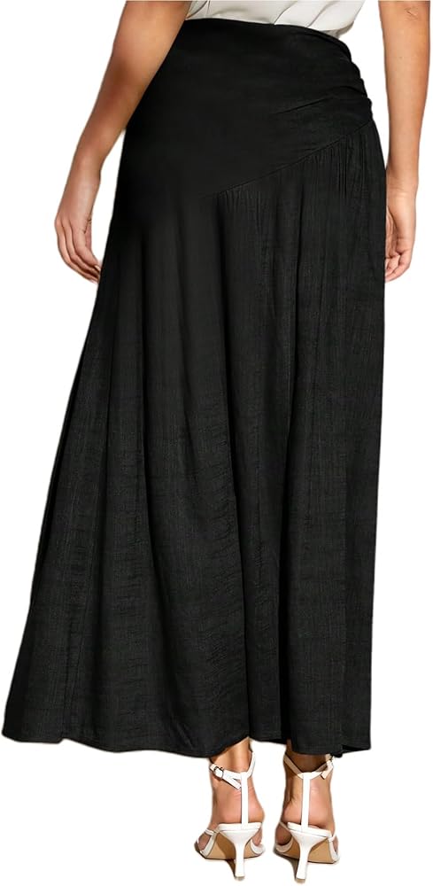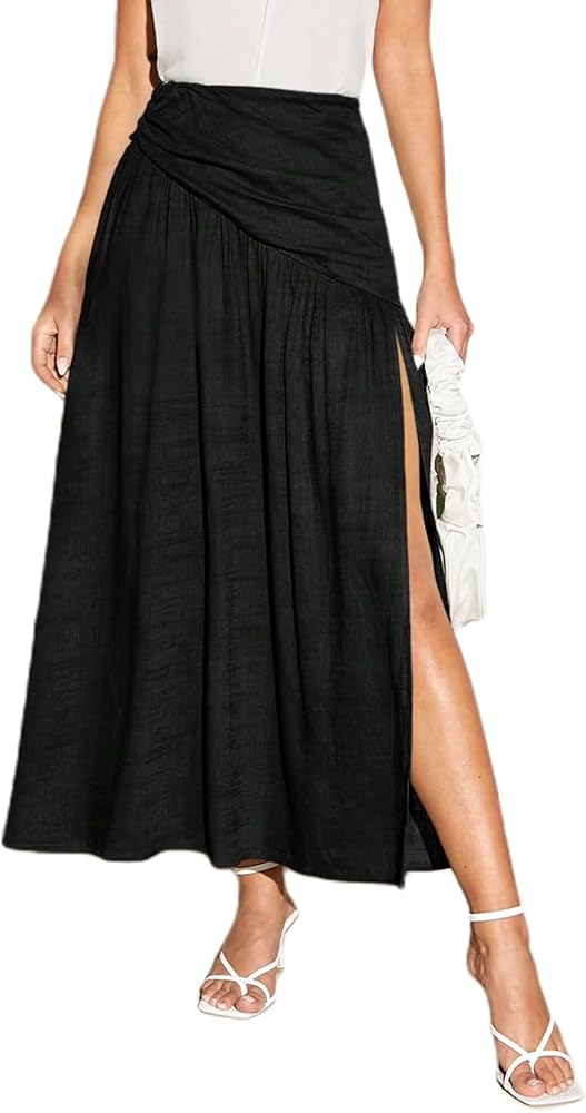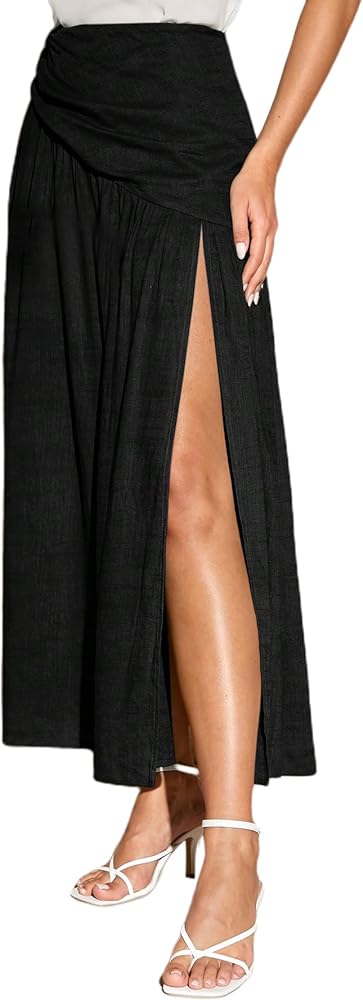 SOFIA'S CHOICE Women Ruched Skirt Side Split Thigh High Waisted A Line Maxi Skirt