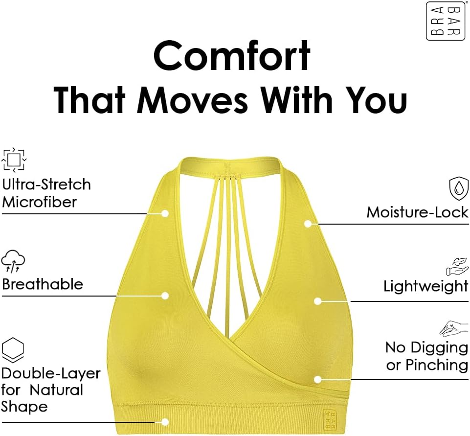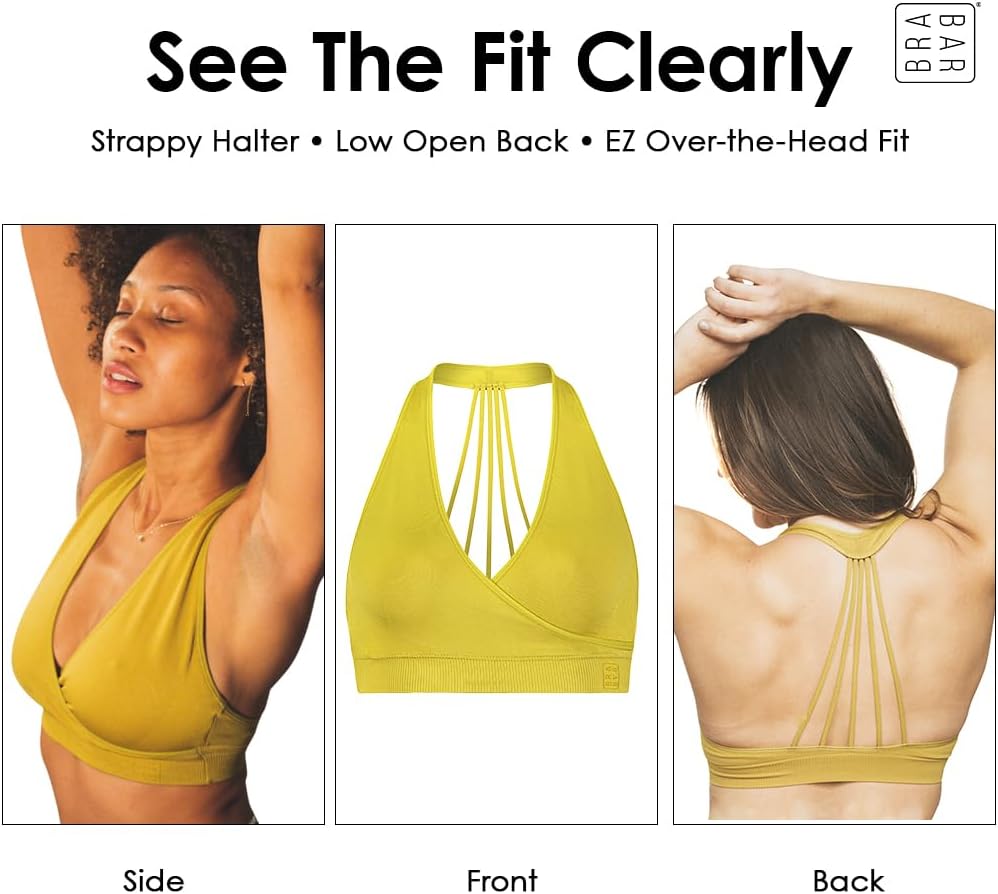 The BraBar HUG Strappy Bralette BB103 is wire-free and self-lined, with an over-the-head halter strap and a supportive multi-strap racerback. BraBar's HUG Strappy Bralette is made of nylon/spandex. Please note this is a FINAL SALE item - sorry, no returns, exchanges or refunds.
