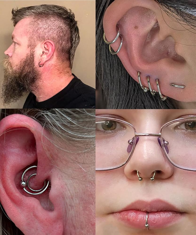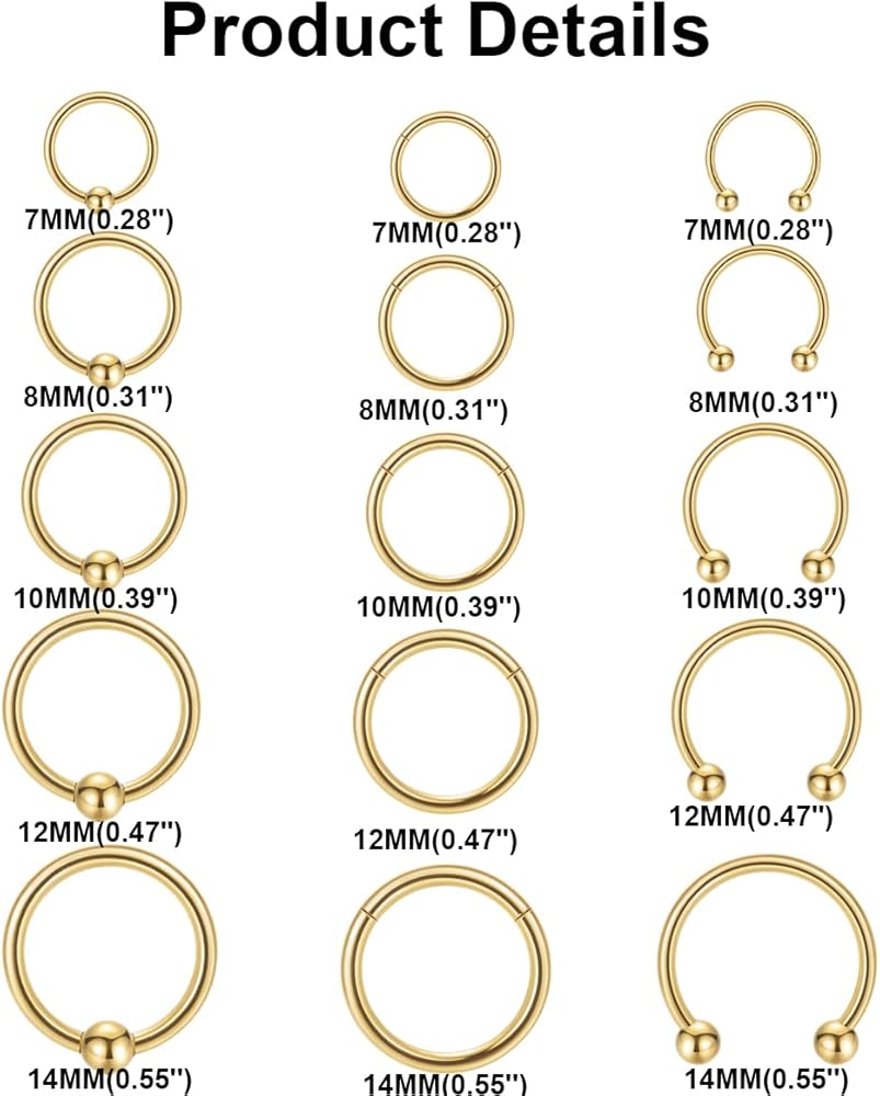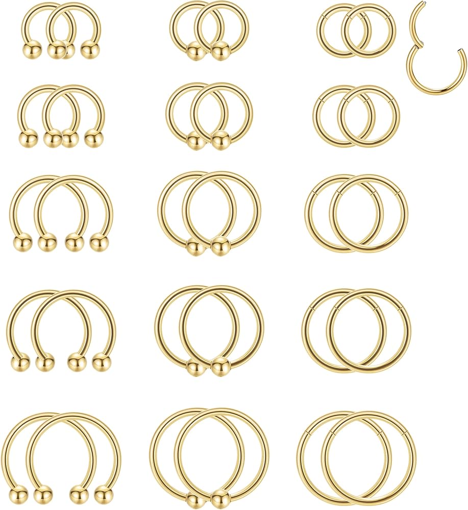 • 【وصف المنتج】: سوف تحصل على 30 قطعة من الأقراط الغضروفية. نظرًا للأحجام المختلفة، يمكنك استخدامها لثقب الغضروف، وثقب الحلزون، وثقب الزنمة، وثقب الحاجز، وثقب الأنف، وثقب الشفاه، وثقب سونغ، وثقب الروك، وثقب دايث، وثقب مداري.