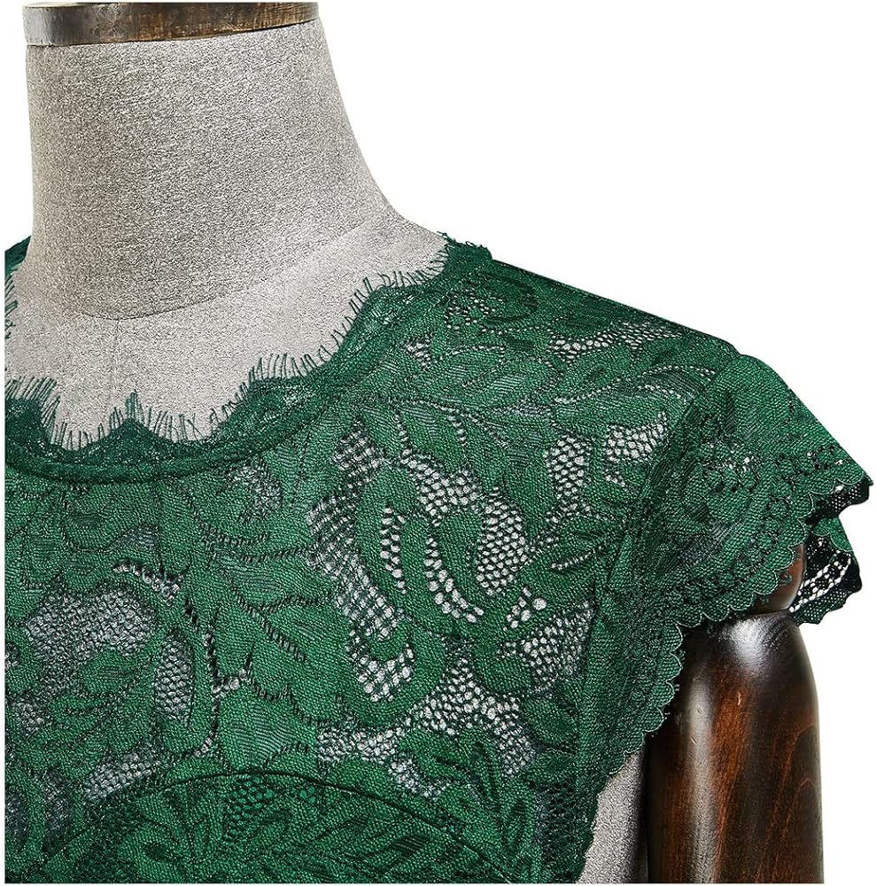 تصميم رقبة من الدانتيل على شكل زهرة، بدون أكمام، مقاس كلاسيكي.
