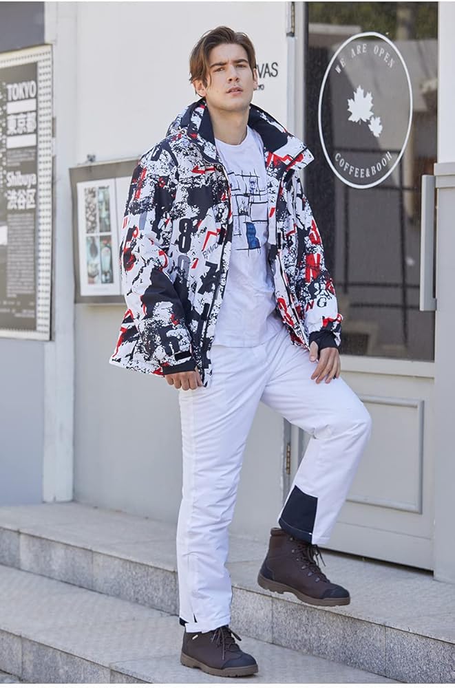 الدفء - بدلة التزلج المبطنة للرجال ذات مقاس عادي، تدعم الدفء والحركة بسهولة عند التزلج أو الركوب أو جولات التزلج أو تسلق الجبال أو التنزه سيرًا على الأقدام أو التسلق أو التزلج على الجليد أو ممارسة الرياضات الشتوية الأخرى، إلى جانب طباعة الموضة التي تسمح لك إنتاج الطراز الحديث، وهو ملابس التزلج التي تضفي طابعًا فرديًا على مظهرك.
