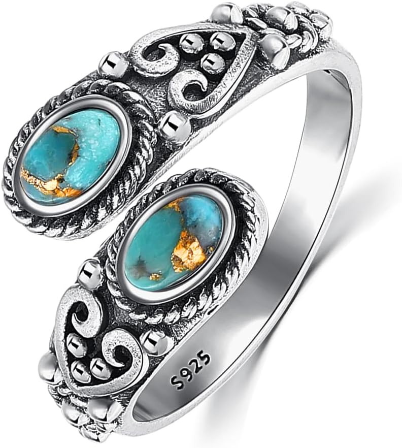 خاتم على شكل ملعقة تركواز للنساء من ياريسول مصنوع من الفضة الاسترلينية عيار 925 بتصميم بوهو قابل للتعديل ومفتوح