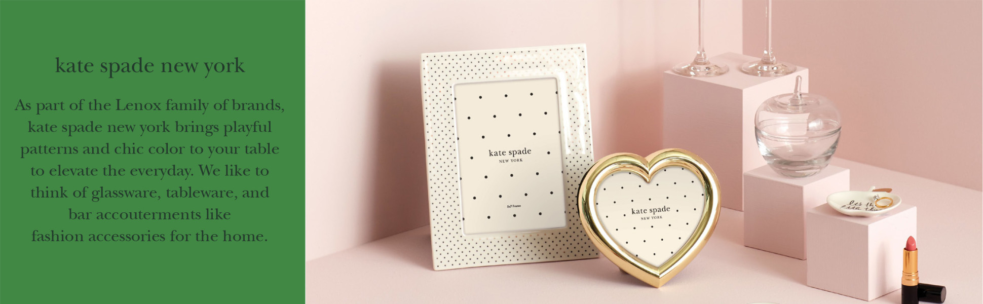 من تحميص المزامير إلى شوك التذوق إلى إطارات الصور المفضلة، تمنح هدايا كيت سبيد نيويورك كي كورت للعروس كل ما تحتاجه للاحتفال بيومها السعيد، من الزفاف إلى الأبد. إطار كي كورت مقاس 5 انش × 7 انش مصنوع من الستانلس ستيل المتين المطلي بالفضة 18/10. كجزء من عائلة لينوكس من العلامات التجارية، تقدم كيت سبيد نيويورك أنماطًا مرحة وألوان أنيقة إلى طاولتك لرفع مستوى كل يوم. هذه العلامة التجارية الثورية لأدوات المائدة من مصمم الملابس والإكسسوارات، كيت سبيد، فريدة ومرحة. يمنح المرأة العصرية القدرة على التعبير عن أسلوبها الشخصي في المنزل. مع الألوان الواضحة والأنماط الجريئة والذكية التي تتماشى مع التقليدية، فإن الخط هو وسيلة رائعة ومتطورة لإضفاء الأناقة المنعشة على طاولتك - والحياة.