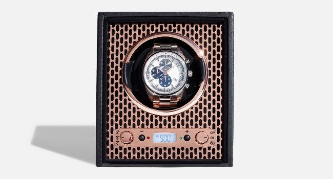 مستوحاة من أفضل السيارات البريطانية - خذ ساعاتك في جولة في سيارة Roadster. لتحويل ساعتك بشكل مثالي إلى عدد محدد من المنعطفات، فإن خشب Roadster المصقول وأجزاء صلبة من الكروم والجلد الناعم تشكل الخلفية المثالية لأي ساعة.
