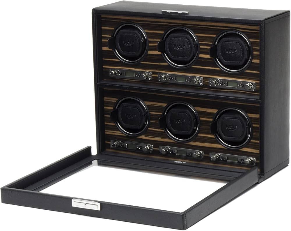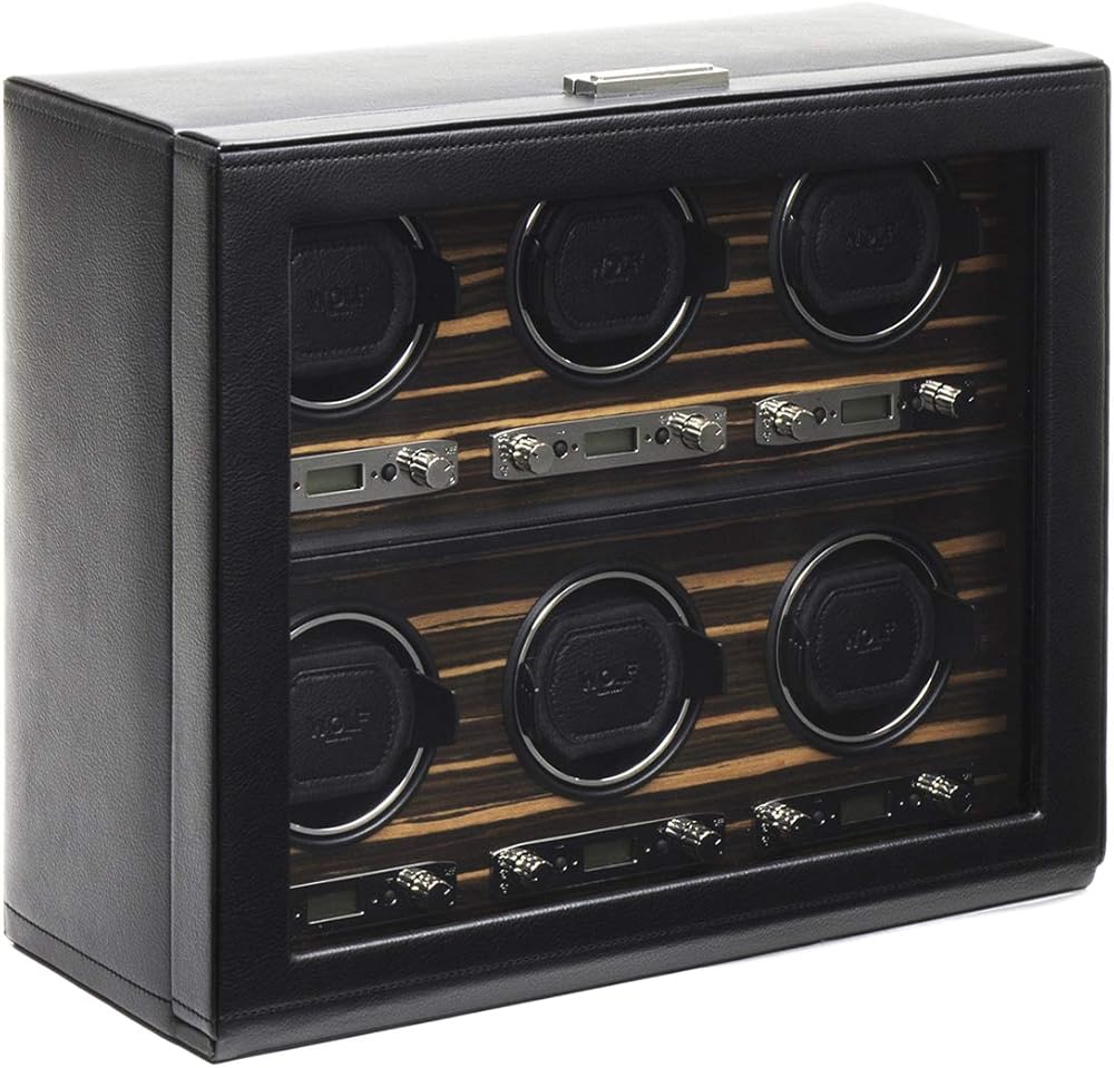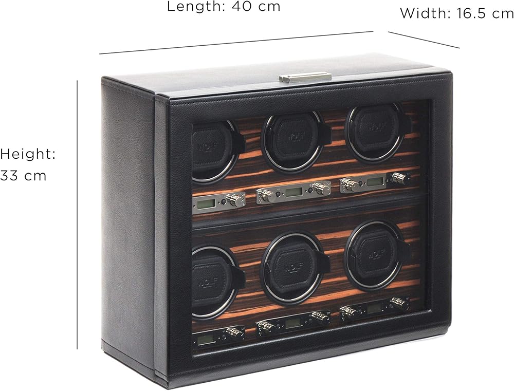 حافظة ساعة WOLF Roadster مع غطاء زجاجي، أسود - ملاءمة آمنة مع سوار ديناميكي حاصل على براءة اختراع - يناسب جميع أحجام المعصم - جلد نباتي - يتضمن محول عالمي